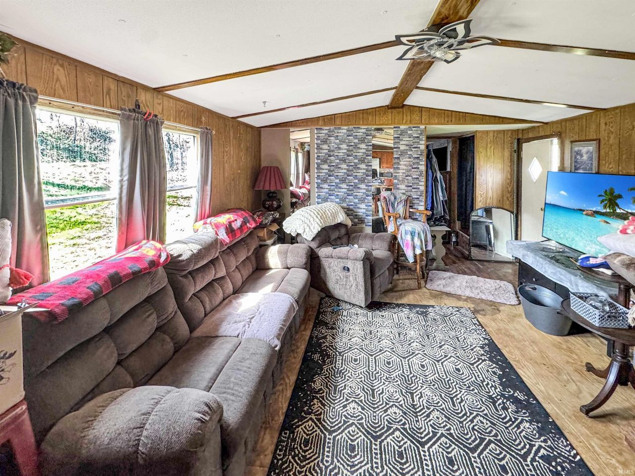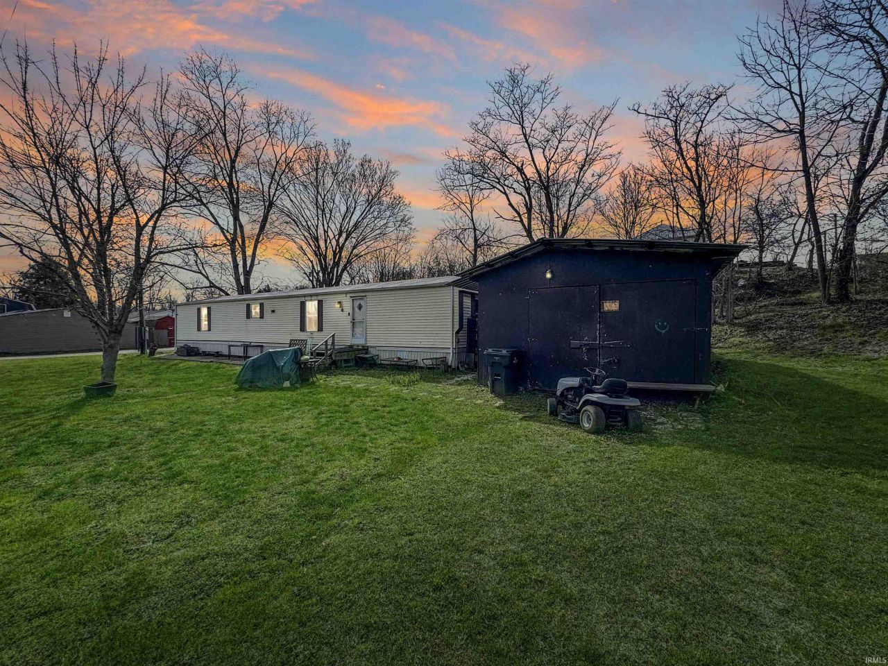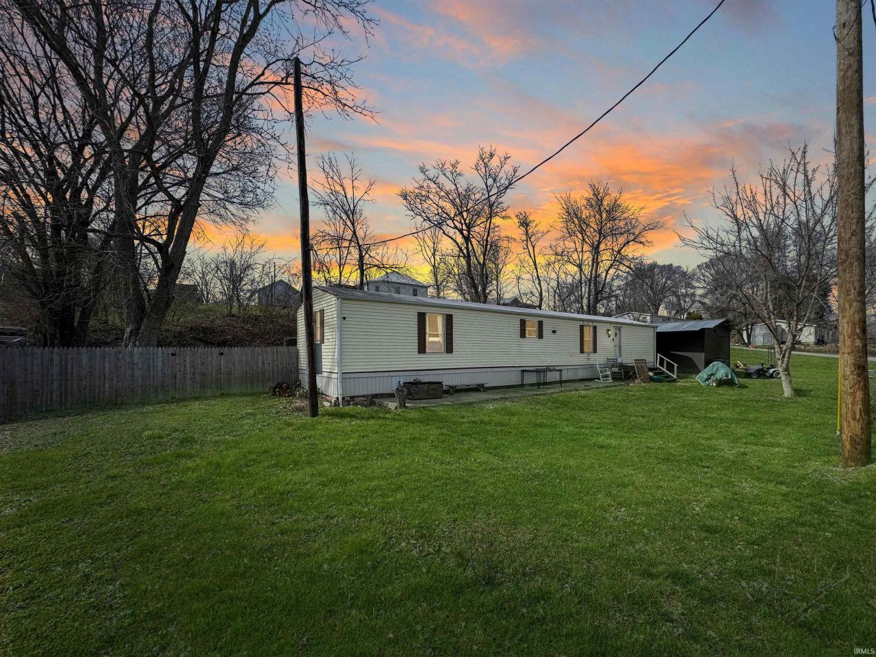 Charming and affordable 2-bedroom, 2-bath manufactured home situated on a double sized corner parcel. This property offers a great blend of indoor comfort and outdoor space, featuring a fully fenced backyard and a screened-in porch perfect for relaxing or entertaining. Inside, you'll find a functional layout with an eat-in kitchen, vaulted ceilings, and a comfortable living area. The home comes mostly furnished, making it a great opportunity for a primary residence, rental, or investment property. The detached garage includes additional workspace and storage, and the property offers multiple outdoor features along with open yard space. Conveniently located near White Lick Creek and just minutes from local amenities, parks, and town conveniences.