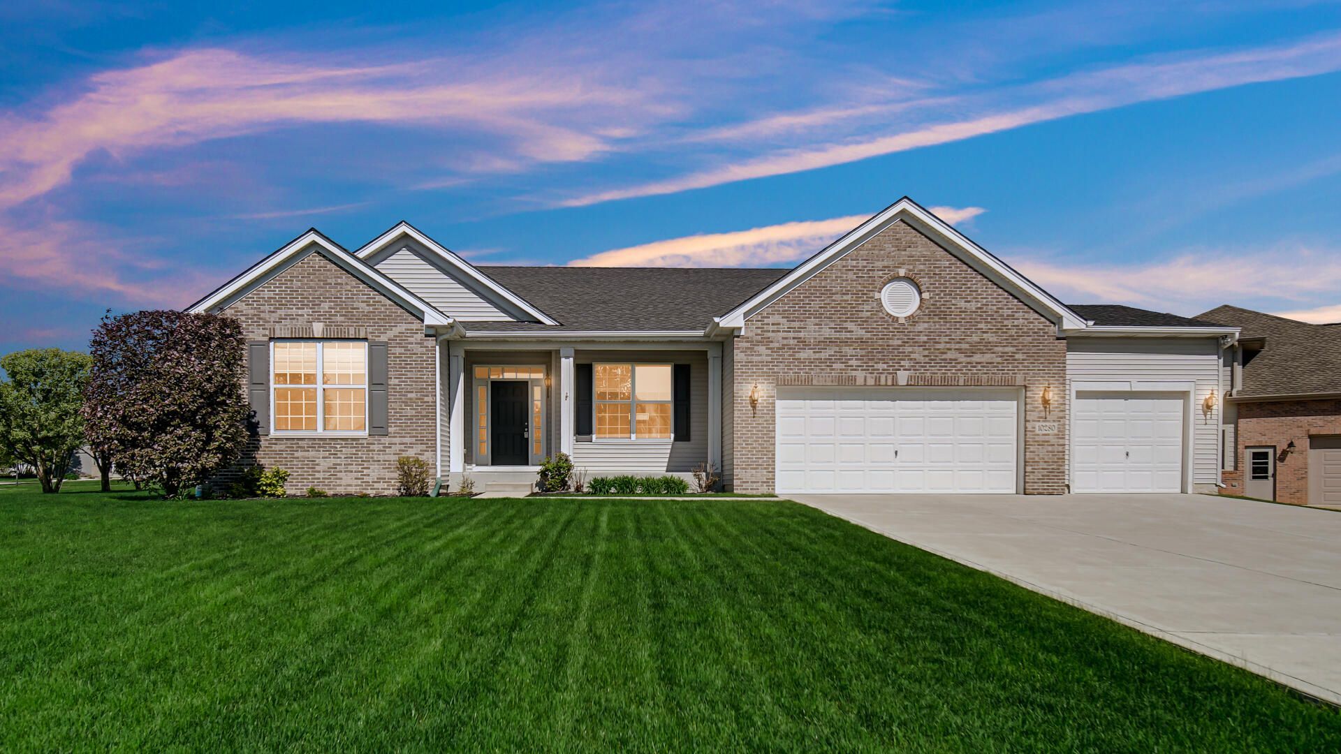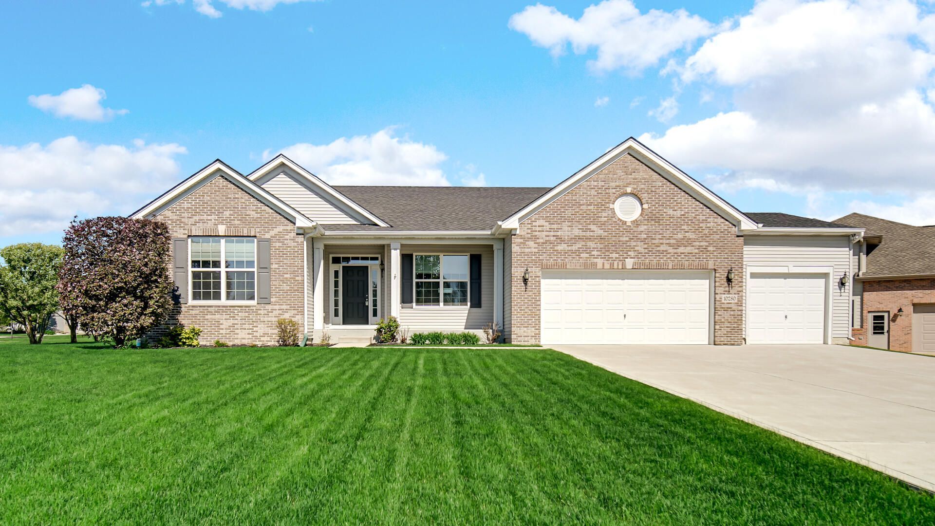 Proudly presenting this beautiful 3-bedroom, 3-bath ranch home situated on a large corner lot in the highly desirable Summertree community. Better than new, this brick and vinyl home offers timeless design, quality construction, & exceptional curb appeal, complete w/ a sprawling yard, serene pond views, & a three-car garage. Step through the front door, accented by a charming transom window & double sidelights, into a bright open-concept foyer with rich hardwood floors. A spacious dining room sits just off the entry, perfect for hosting. To the left, two generously sized bedrooms are thoughtfully separated by a full bath, along w/ 2 coat closets providing ample storage. The heart of the home features a spacious open living area w/ Pergo Outlast waterproof laminated wood flooring abundant light, & a remote-controlled gas fireplace--ideal for everyday living & entertaining. The kitchen offers 42 custom cabinetry, granite countertops, stainless steel appliances, a large pantry, & a functional layout that flows seamlessly into the breakfast area & living room. Sliding doors lead to a concrete patio where you can relax & enjoy peaceful pond views & breathtaking sunsets. Tucked privately down the hallway, the primary suite impresses w/ double entry doors, a tray ceiling, two walk-in closets, and a newly updated 3/4 bath featuring a walk-in shower, elevated double vanity, and hard-surface countertop. Additional highlights include a finished main-floor laundry room, ample closet space, a sprinkler system, hard-wired alarm system, newer sump pump with battery backup, and an updated ejector pump. The partially finished basement w/ crawl space offers a large rec room and a newly finished 3/4 bath--perfect for extra living space or entertaining. Ideally located near shopping, worship, & medical facilities, this meticulously maintained home is nestled in a well-established, sought-after neighborhood. For added peace of mind, the seller is offering 1 yr home warranty. Don't blink.