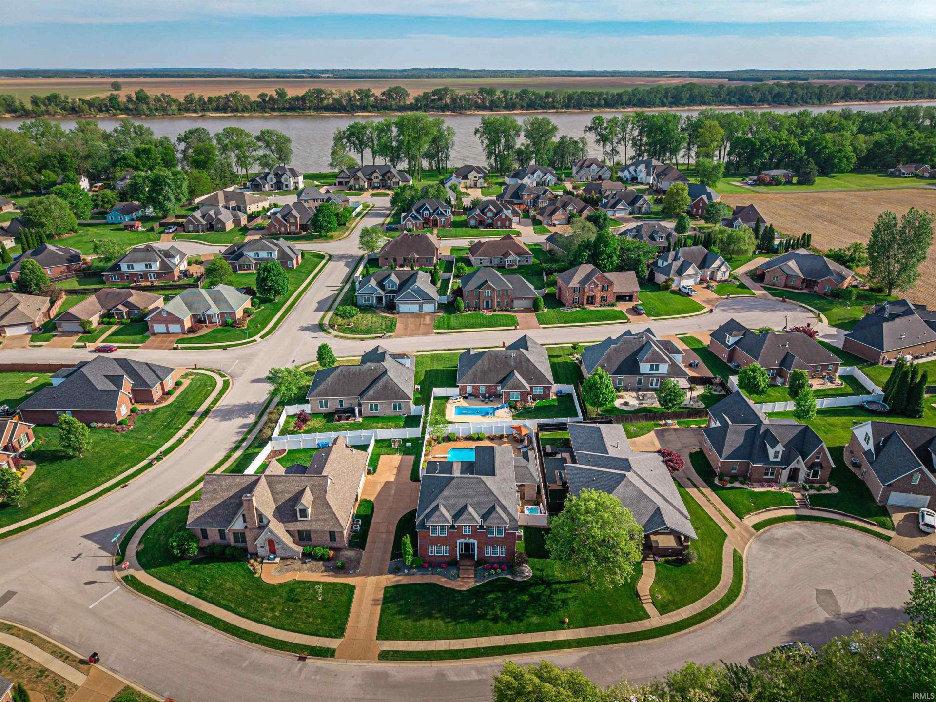 Experience the pride of ownership in this beautifully cared-for home in the heart of Newburgh. Situated just blocks from the Ohio River and a short bike ride to the scenic French Island Trail and the Historic Downtown riverfront, this property delivers both convenience and lifestyle. Step inside to discover hardwood floors, a desirable front and back staircase, and multiple living spaces designed for both everyday living and entertaining. The inviting front living room features a cozy gas-log fireplace flanked by custom built-ins, while the formal dining room provides a spacious area for gatherings. The eat-in kitchen is a true centerpiece, complete with a breakfast bar, coffee bar, and has direct access to the side patio. Just off the kitchen, the family room offers stunning views of the backyard oasis, creating a seamless indoor-outdoor connection. Outdoors, you'll fall in love with the incredible in-ground saltwater pool (Schenk-built) and resort-style setting, complete with a covered patio featuring a fireplace, grill station, and hot tub (new in 2022)?perfect for relaxing or entertaining all season long. Upstairs, the spacious owner's suite includes a large full bath with a walk-in shower, double vanity, generous closet space, and access to a walk-in unfinished attic. Three additional bedrooms offer ample closet space and share a well-appointed second full bath. Additional highlights include a dedicated laundry room with utility sink and cabinetry, plus a tornado shelter conveniently located in the garage for added peace of mind. Recent updates include a new roof (2022), HVAC system (2018), pool pump, landscaping, kitchen sink, and garbage disposal. Don't miss this opportunity to own a well-cared-for home in a prime location with exceptional indoor and outdoor living spaces?perfect for hosting friends and family this summer!