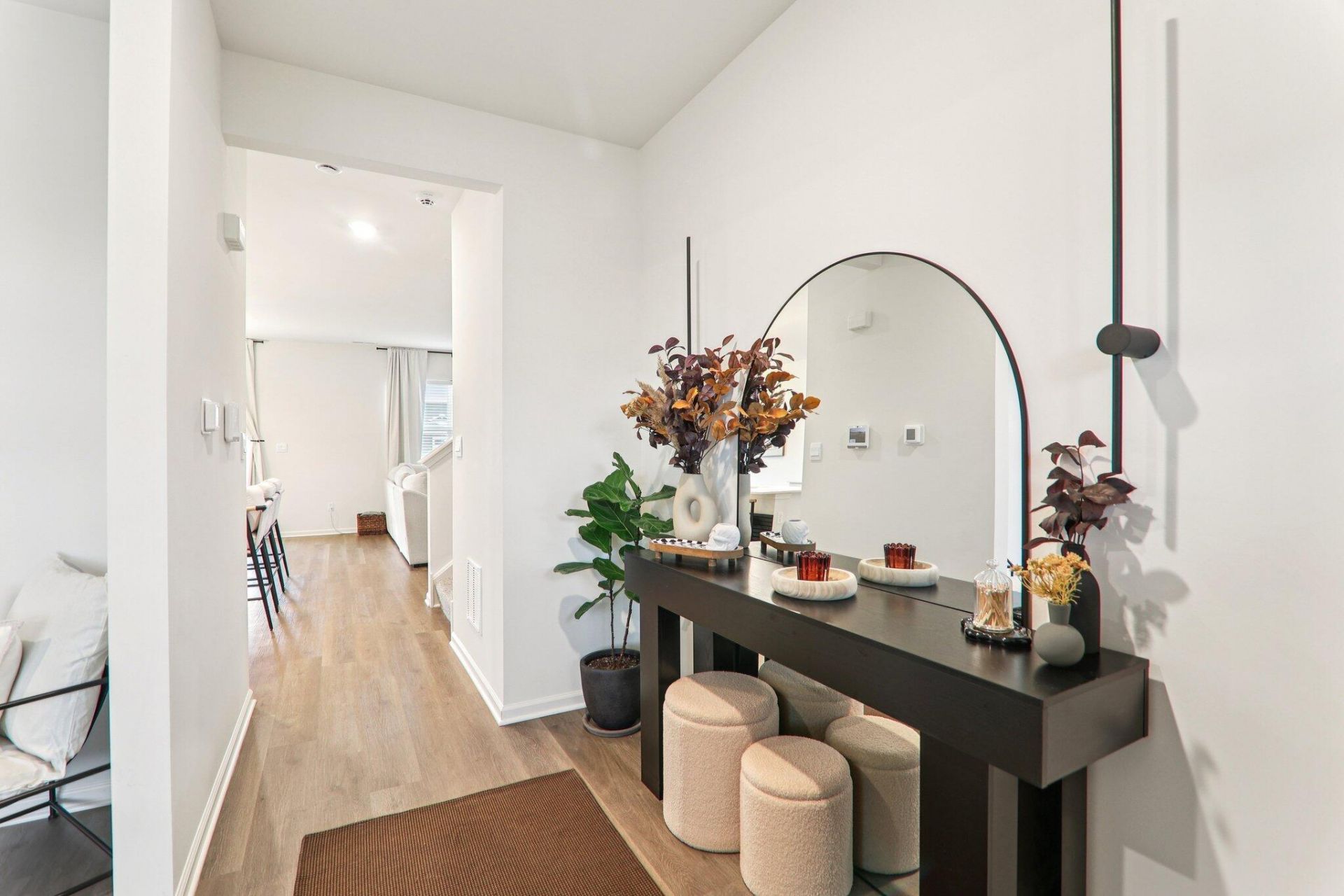 Welcome to your 9-month new home in the Gates of St. John! This stunning new construction offers over 2,500 sq. ft. of thoughtfully designed living space, featuring 4 spacious bedrooms, 2.5 baths, and a versatile main-level den perfect for a home office or study. With impressive 9 ft. ceilings and luxury vinyl plank flooring throughout the main level, this home is dripping in both style and functionality. The gourmet kitchen is well-designed, complete with quartz countertops, a corner pantry, a large island with seating, and stainless-steel appliances all overlooking the expansive living room, creating the perfect space for entertaining. Just off the garage entry, a large walk-in closet provides additional storage and convenience. Upstairs, a spacious loft connects four generously sized bedrooms, including a luxurious primary suite with a dual vanity, walk-in shower, and walk-in closet. Situated on a fully landscaped, and sodded lot with durable Hardie board siding. This home is also an energy-efficient SMART HOME, featuring an industry-leading suite of smart technology for a seamless, hands-free living experience. Water softener, water purifier, stainless-steel appliance suite, and washer/dryer all convey with the property - unlike when you buy from the builder! Located in the highly rated Crown Point School district and offering easy access to Illinois for Chicago commuters, this home is a must-see!