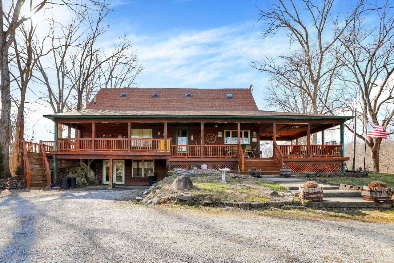 Rare opportunity to own 12.63 acres featuring a 2.5-acre stocked pond that reaches approximately 22 feet deep, complete with a water slide, offering both recreation and excellent fishing. The property is improved with a 4-bedroom, 2-bath cedar cabin-style home offering over 3,100 square feet of living space, blending rustic charm with generous room for everyday living and entertaining. Outdoor amenities are truly unmatched and include an outdoor shelter with a built-in bar, a basketball court, three outbuildings (43 x 24) (56 x 24) (60 x 55), and stadium lighting that illuminates a custom dirt go-kart track. With a unique combination of residential comfort, recreational features, and expansive acreage, this property offers endless possibilities for private enjoyment, entertaining, or future use. A one-of-a-kind offering rarely found on the market.