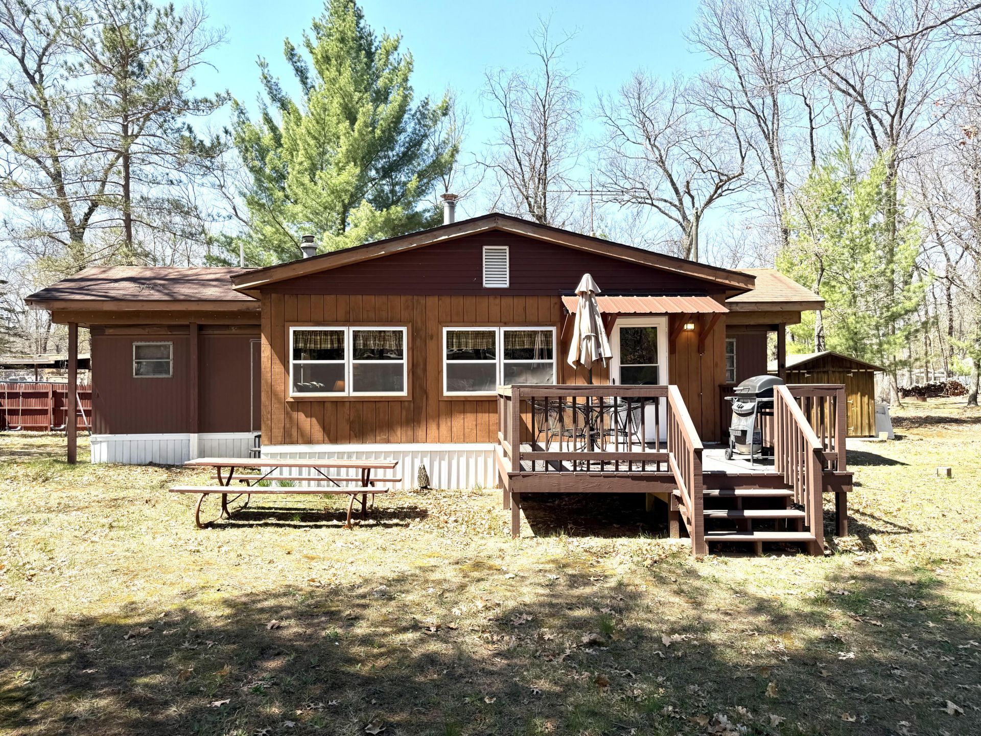 Nearly 1 acre with a charming 2-bedroom, 1-bath cabin just minutes from Big Star Lake and Bayak Beach! This cozy getaway features an additional living room addition with a beautiful wood-burning fireplace, creating the perfect space to relax year-round.Outside, youll love the extra-large lot with plenty of room to park multiple RVs, trailers, and other recreational vehicles, making it ideal for hosting friends and family or storing all your up-north toys. A storage shed adds even more convenience for equipment and gear. Located near an all-sports lake and surrounded by endless trails for motorcycles, ORVs, and snowmobiling, this property is perfect for weekend adventures or full-time living. Enjoy the best of Northern Michigan lifestyle--only about 30 minutes from Lake Michigan! Perfect as a vacation retreat, rental opportunity, or year-round home. All contents in home included. New well, water heater and 2025 new foam insulation under home.