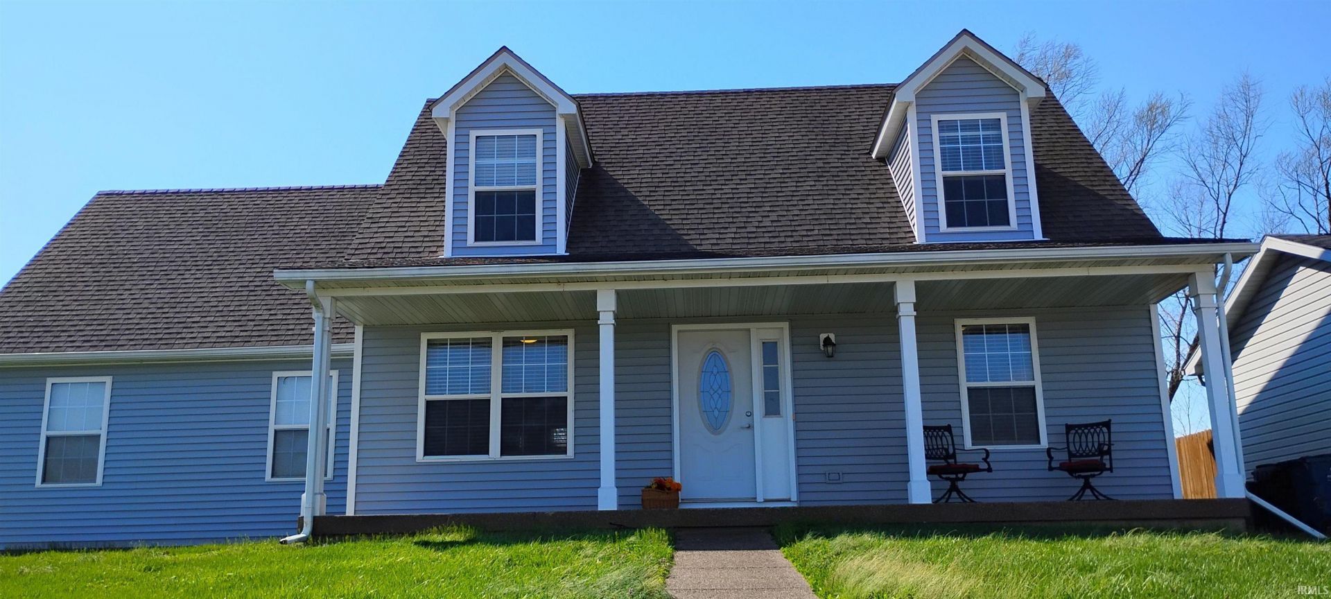Ideal corner lot location for this beautiful 4 BR, 2.5 bath Cape Cod Style home with lovely covered porch to greet you. The main level features a wonderful kitchen with all appliances, pantry/laundry room with front load washer/dryer set and plenty of shelving, family room, dining room, half bathroom and living room/office. Upstairs features a spacious master suite with walk-in closet and private bathroom, hall full bathroom, guest bedroom with dormer, guest bedroom with walk-in closet, and guest bedroom with TV. Completing this fantastic home is a convenient side-load garage with man door access to your fenced back yard that has a large shed with a window. Great dual HVAC system ensures year-round comfort. Brand new siding in 2025. Convenient to McCutchanville School, Hornet's Nest, Boonville New Harmony Rd, Hwy 57, and I 69.