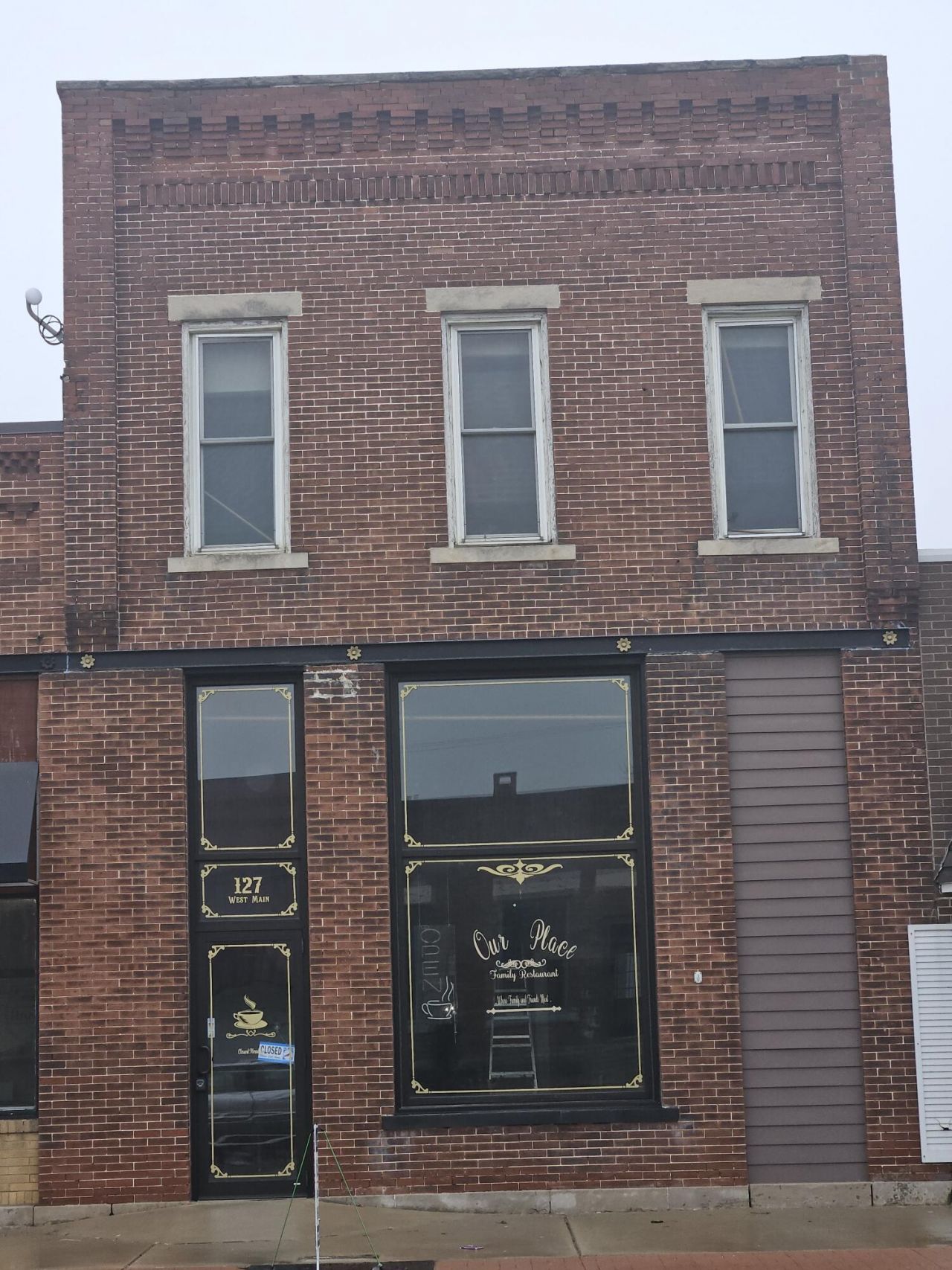 This renovated historic commercial building combines timeless character with modern versatility, offering exceptional flexibility for a wide range of business uses. Located on main street, the space is ideal for retail, office, studio, or service-based businesses. The upper-level apartment provides private living quarters or a potential rental income opportunity, creating a unique live/work or investment scenario. The main level showcases beautiful hardwood floors, soaring ceilings, a vintage decorative tin ceiling, and an exposed brick accent wall, all complemented by a standout feature: the original bank vault, a distinctive reminder of the building's banking origins. With its mix of historic charm, modern updates, and flexible layout, this property presents a rare opportunity to establish a business in a one-of-a-kind, highly visible location. Brick two story with 2931 square feet is zoned for mixed use. The main level has 1755 square feet, high ceilings, hardwood floors and a kitchen. This has been a restaurant for many years and equipment and supplies will remain with the sale. Upstairs is a 2 bedroom apartment with 1176 square feet.(currently rented month to month). Apartment has stove and refrigerator and new furnance installed 2023.