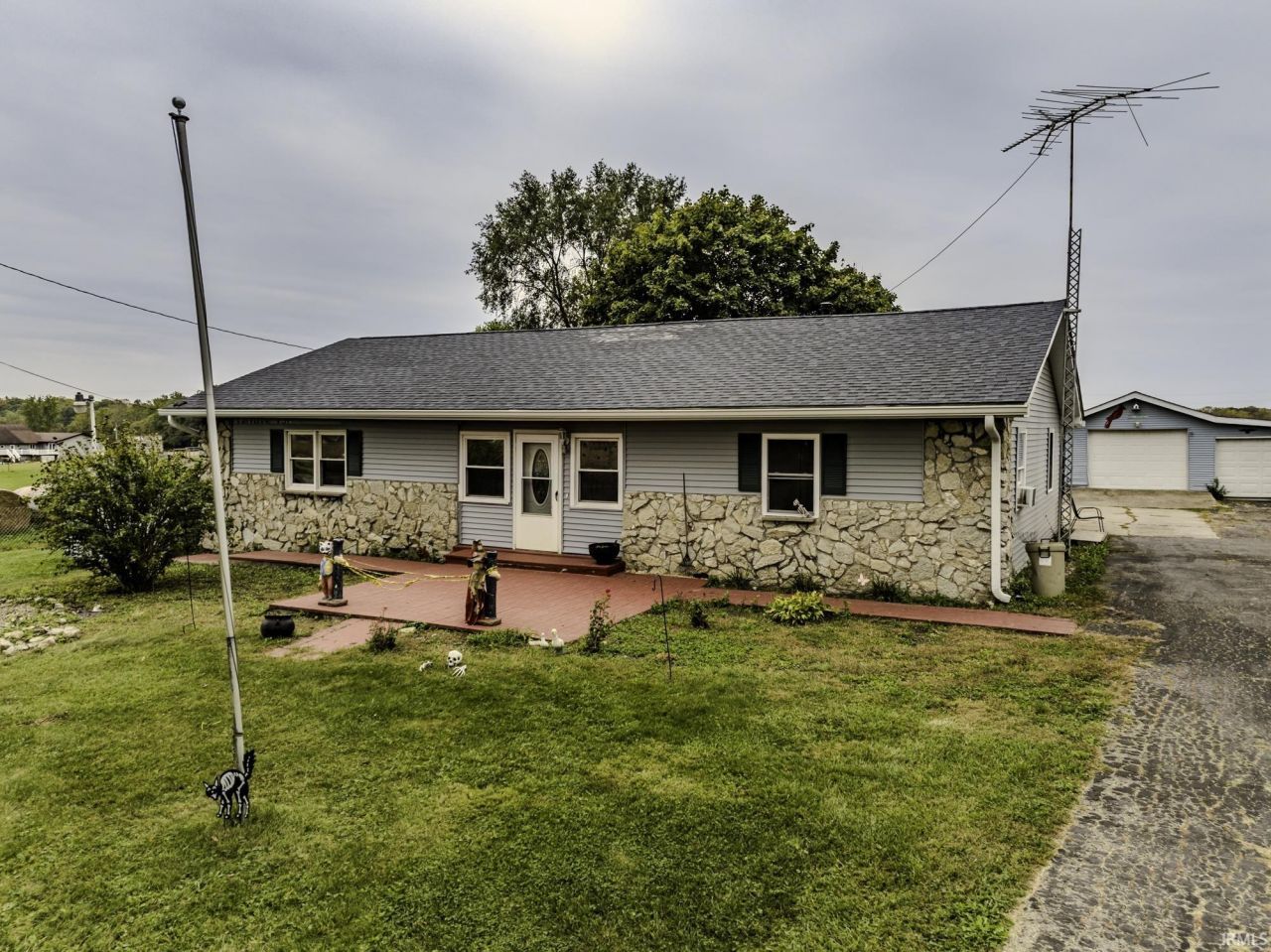 This move in ready home combines small town charm with thoughtful updates and tons of storage and workspace options. Updates include HVAC, septic, water softener, electrical breaker box, light fixtures, double pane windows, carpet and laminate flooring. This home offers two large bedrooms plus a back room that is being used as a third bedroom. Lots of storage options with 2 garages and storage shed plus a back room on the 2-car garage that would make a great workshop or man/woman cave. Additional features include fully fenced yard offers privacy and safety, back porch with pergola and Monroe Central Schools.