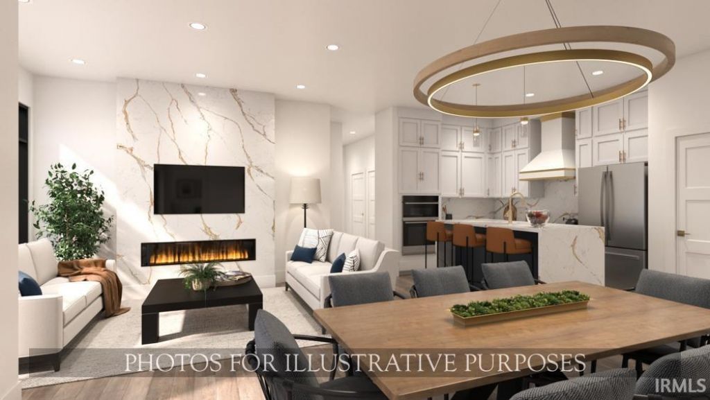 ***5.00% Pre-construction pricing discount off the listed price, available for a LIMITED time*** Varsity View Luxury Condominiums is located at the NE corner of Angela and South Bend Ave across from the iconic Linebacker Lounge. Just 1 block back from the Notre Dame Sports Complex, Varsity View has epic views of the Stadium, Golden Dome and Touchdown Jesus. This 5 story, new construction condo development offers on site parking, a variety of floorplans from 1-4 bedrooms and awesome common amenities like a gym, storage lockers, roof top decks/lounge with panoramic views on the 5th floor. Interiors offer modern finishes in either blue or gold level packages. Balconies provide outdoor living space and a chance to hear the roar of the stadium. Walk home from campus or gameday and be relaxing in your luxurious unit before others have left the parking lot! Completion is expected in Summer 2026, making now the perfect time to secure your place in this one-of-a-kind community. Unit 207 offers a 1151 sq. ft. 2 bed, 2 bath flat with a primary en-suite bedroom & bath, open concept layout, balcony, upgraded finishes including a quartz feature wall with fireplace, custom brass accented range hood, tile showers and a dedicated parking space. *Renderings are for illustrative purposes only and may differ from the actual floor plan.