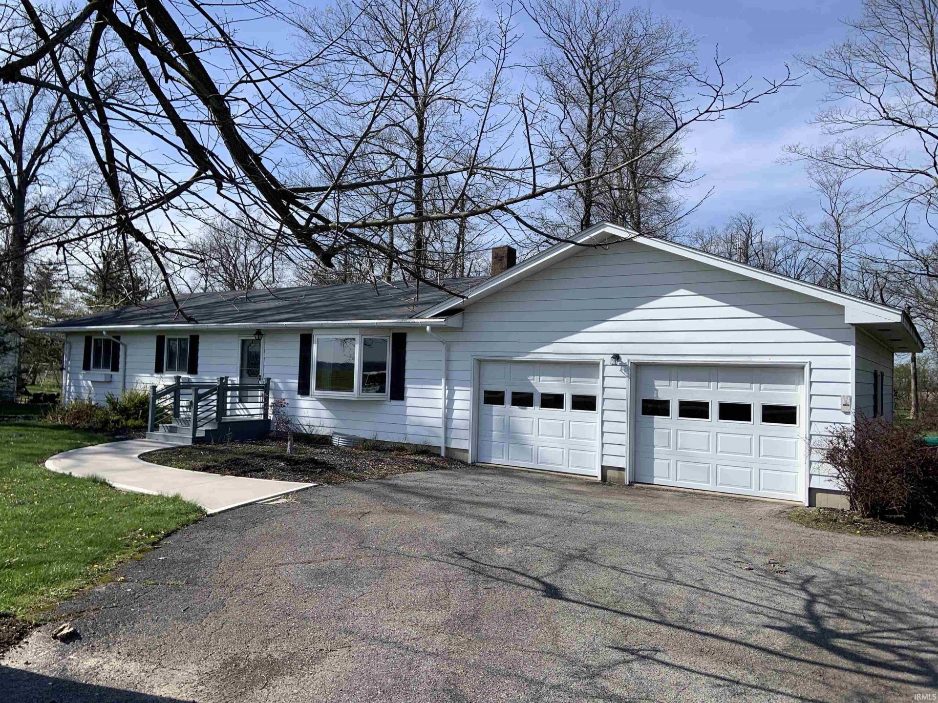 Public Auction held on site May 12 @ 6:00 PM. Great location, convenient to US 30 & I469. 3 Bedrooms, 1 full & 2 half baths, full finished basement with bar and brick fireplace with an additional office in basement. 2 car attached garage. 1.27 acre wooded lot. Features: large oak kitchen, central AC, rural location, new front concrete walk and front door stoop, large bow window in family room...... Peaceful rural living in East Allen County. This one is ready to move into.