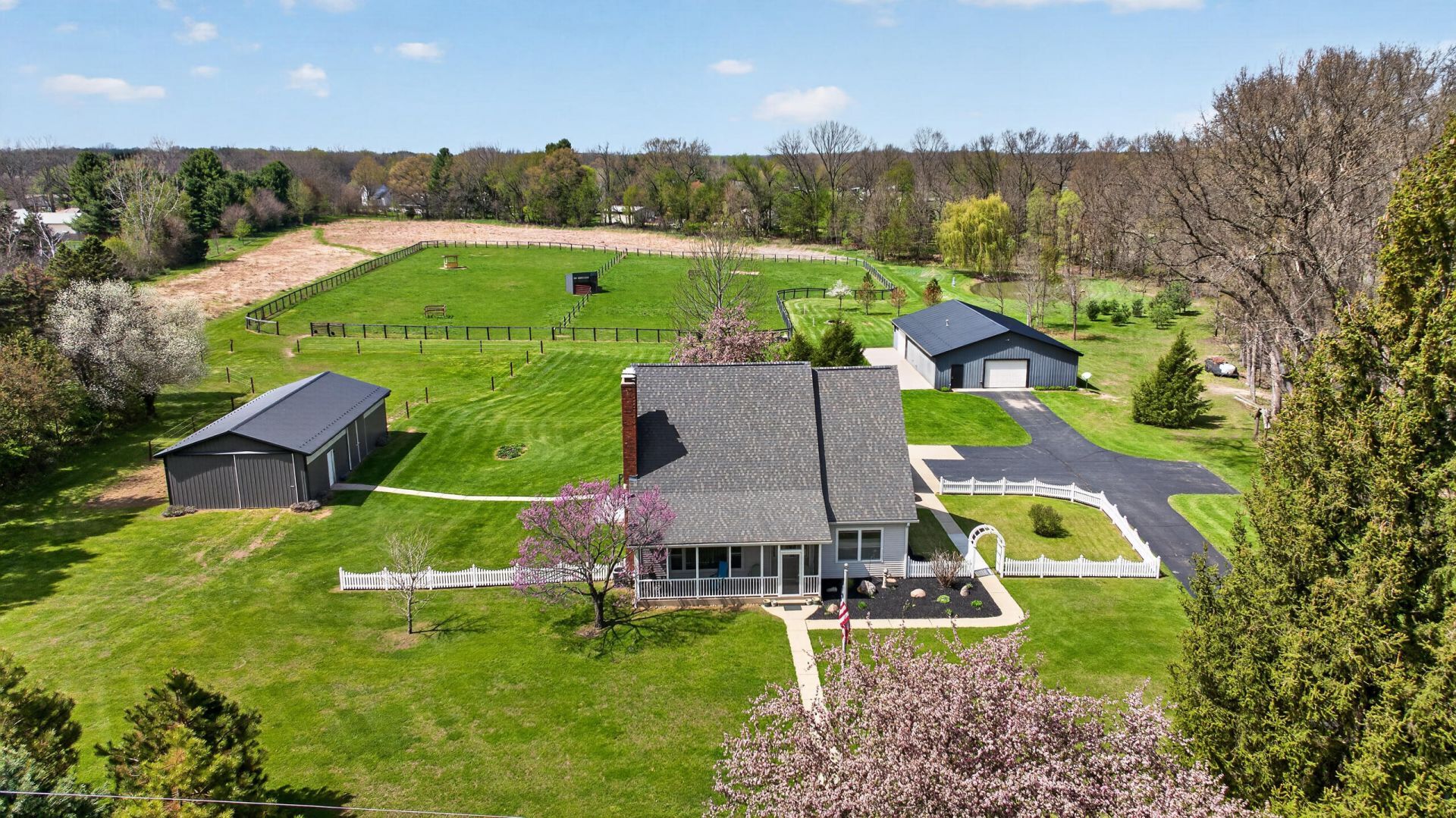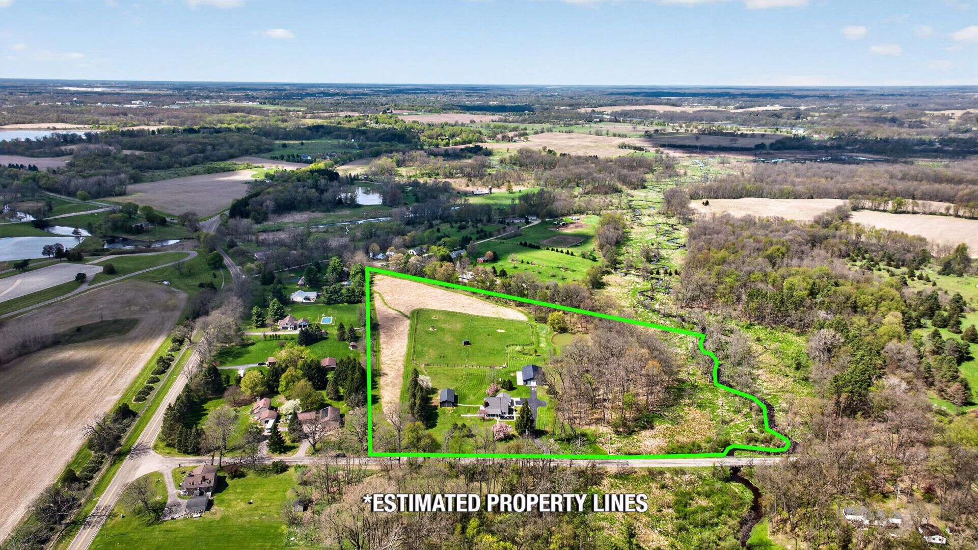 One of a kind! No other property like it in the Marshall market. Situated on 14.55 acres, this impeccably maintained estate features a 3-bedroom, 2.5-bath home with first-floor primary suite, dedicated laundry room, comfortable living and dining areas, eat-in kitchen, and powder room. Two additional generously sized bedrooms along with an additional full bathroom are located upstairs. The partially finished basement offers a recreation room and concrete storm shelter, while an enclosed breezeway attaches the home to the 2-car garage. Outside youll find a well-equipped horse barn, expansive pole barn, and fully fenced pastures--ideal for horse enthusiasts or hobby farmers. The stocked pond, manicured grounds, and groomed trails add to the picturesque setting. Extensive updates include newer roofs, HVAC, windows, and more. Amenities and updates outlined within the associated docs.