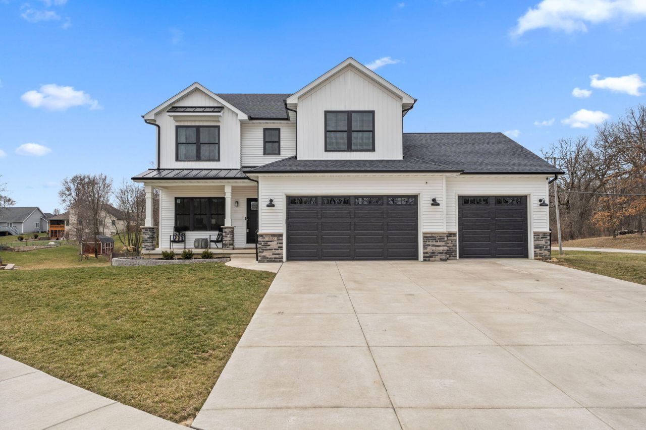 NEW CONSTRUCTION UNDERWAY LATE SUMMER EARLY FALL DELIVERY! Welcome to Farmington Hills, where upscale neighborhood meets rural living. The Joelle capturing the all too popular modern farmhouse design & all its flair. A clever mixture of horizontal lap/vertical board & batten siding, cultured stone wainscoting & pillar base finished with LP Smart Side posts and columns, tied together with standing seem metal accent roofs provides curb appeal to the max. Upon entry to your left lies flex room that can serve as office, exercise, sitting, reading or 5th bedroom. An abundance of Anderson windows throughout ensures no shortage of natural lighting particularly in the great room & dining areas. Angled walk in kitchen pantry is flanked on either side by plenty of cabinet space. Large quartz island provides overhang for bar seating. Platform stairway is proposed to be finished in all poplar wood stained or painted to your taste. Beds 2-4 share dual vanity full bath each within close proximity. Primary suite offers an impressive bath layout allowing for make up counter, oversized custom tile and glass shower, floor to ceiling linen cabinet and direct access to laundry via pocket door from massive walk in closet. Rear covered patio is ideal for grilling, outdoor entertaining or hot tubbing, & the heavily wooded 1 acre lot provides mature trees and thick foliage for added privacy. Oversized 3 car garage provides ample space for the vehicles, toys, or workshop but rest assured if more space is desired POLE BARNS / DETACHED GARAGES ARE WELCOME WITH OPEN ARMS & no pesky HOA or fees! Limited inventory available as this neighborhood is reaching capacity fast. Don't miss out on your opportunity. Hand crafted from quality materials by industry leading local tradesmen not a crevice or corner is overlooked... no cookie cutter vibes here. Ask your agent for floor plan or to schedule tour. Interior selections available w/ accepted offer within builder allowances prior to builder ordering