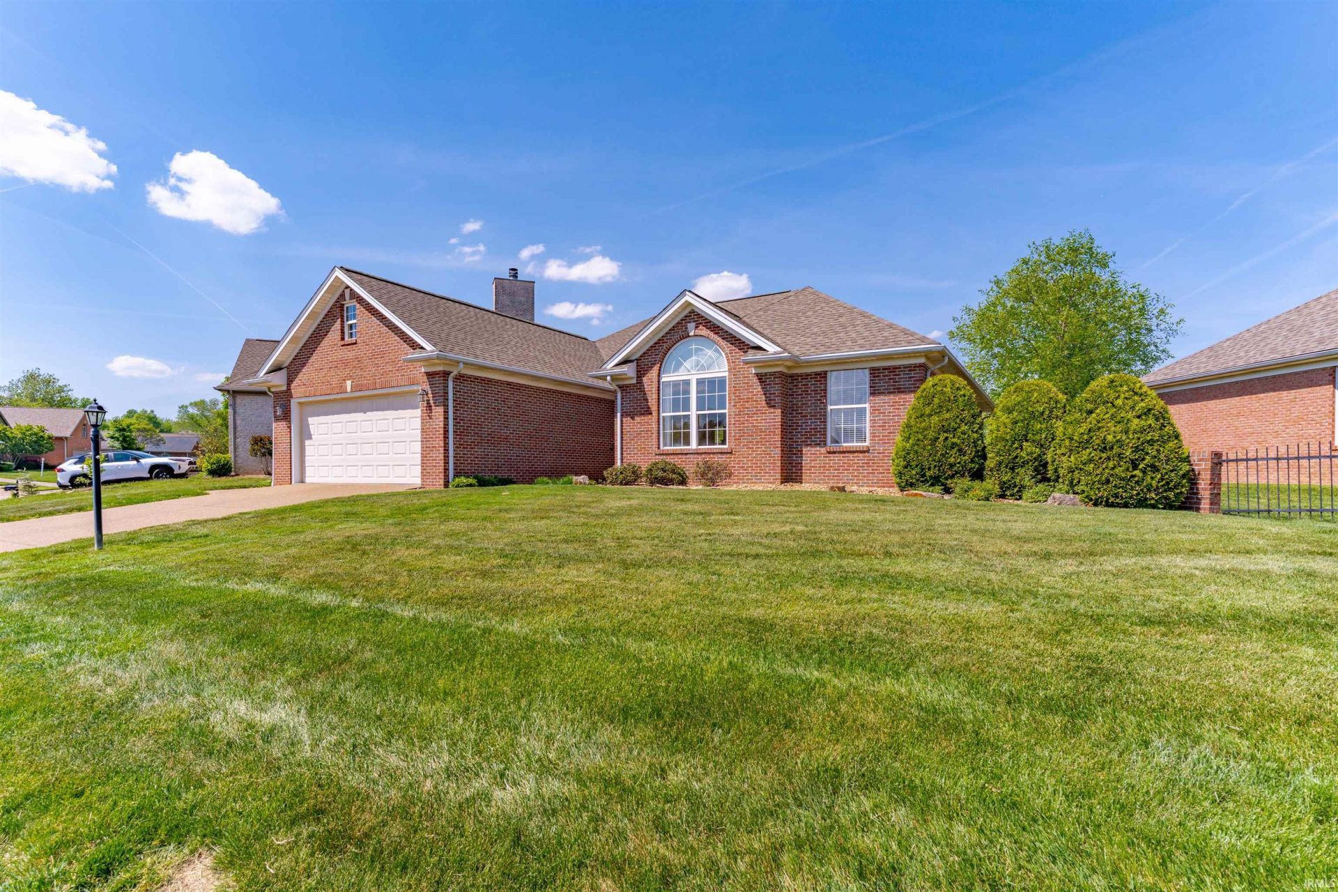Discover this beautifully updated and meticulously maintained 3-bedroom, 2-bath ranch home offering comfort, style, and serene lake views. Step into the welcoming foyer and into an open, spacious living room featuring a cozy gas fireplace and stunning views of the lake just beyond the backyard. The updated kitchen is both functional and inviting, showcasing beautiful countertops, a tiled backsplash, breakfast bar, stainless steel appliances, and a pantry. A formal dining room connects seamlessly to the kitchen, creating an ideal layout for gatherings and entertaining. Just off the kitchen, an additional dining nook or sitting area offers flexible living space to fit your needs. The expansive owner's suite is a true retreat with plush carpeting, a walk-in closet, and a private en suite bath complete with dual vanities, a stand-up shower, soaking tub, and private water closet. The split-bedroom floor plan provides added privacy, with two additional bedrooms located on the opposite side of the home and sharing a well-appointed hall bath. Outdoor living is just as impressive. Enjoy the peaceful water views from the screened porch, perfect for relaxing in nearly any season, or unwind on the open patio, ideal for outdoor dining and entertaining. The backyard stretches to the lake, offering the opportunity to fish right from your own property. Additional highlights include a spacious laundry room with utility sink and cabinetry, attached 2-car garage, attic storage, updated landscaping, and a prime northside location convenient to schools, dining, and Evansville Regional Airport.