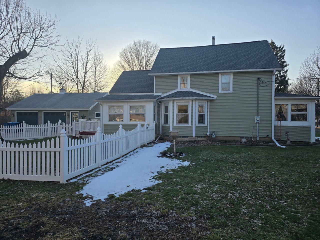 This Turn of the Century Two Story located in Chesterton's Historic District has so much curb appeal. There is a 2.5 car newer garage, pvc fenced yard and a privacy fenced HOT TUB....nicely landscaped with mature fruit trees. Interior features 9' ceiling height, hardwood floors, spacious formal living and dining rooms, an enclosed front and back porch and large kitchen pantry. Bedrooms have walk-in closets and attached bathrooms.