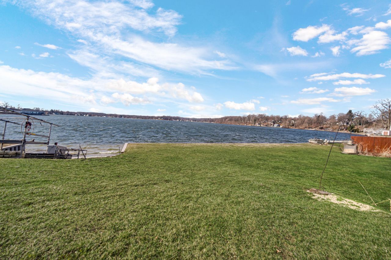 Experience unforgettable sunsets from this exceptional Pine Lake waterfront retreat. Offering an impressive 250 feet of prime lake frontage complete with seawall, private dock, covered boat lift, and two jet ski lifts, this property delivers the ultimate all-sports lake lifestyle. The meticulously maintained hillside ranch features over 2,100 finished square feet of living space, thoughtfully designed for both entertaining and everyday enjoyment. The inviting main level offers a welcoming living room that flows seamlessly into the dining area and kitchen, all showcasing expansive lake views. The generously sized primary bedroom overlooks the water and includes a double closet, complemented by two additional bedrooms and a full bathroom nearby. The finished walkout lower level is warm and inviting, highlighted by a thermostat-controlled wood-burning insert, and continues through to the laundry area and oversized 2.5-car garage. Step outside to the patio and enjoy direct access to the lake and mature landscaping with perennials and fruit trees. Recent updates include newer main-level flooring, an owned water softener, roof, soffits, and gutters (2025), seawall (2020), and garage doors and openers (2021). A 48-foot dock and a 12x20 yard barn complete this rare offering on Pine Lake. It's time to create new memories, schedule your showing today.
