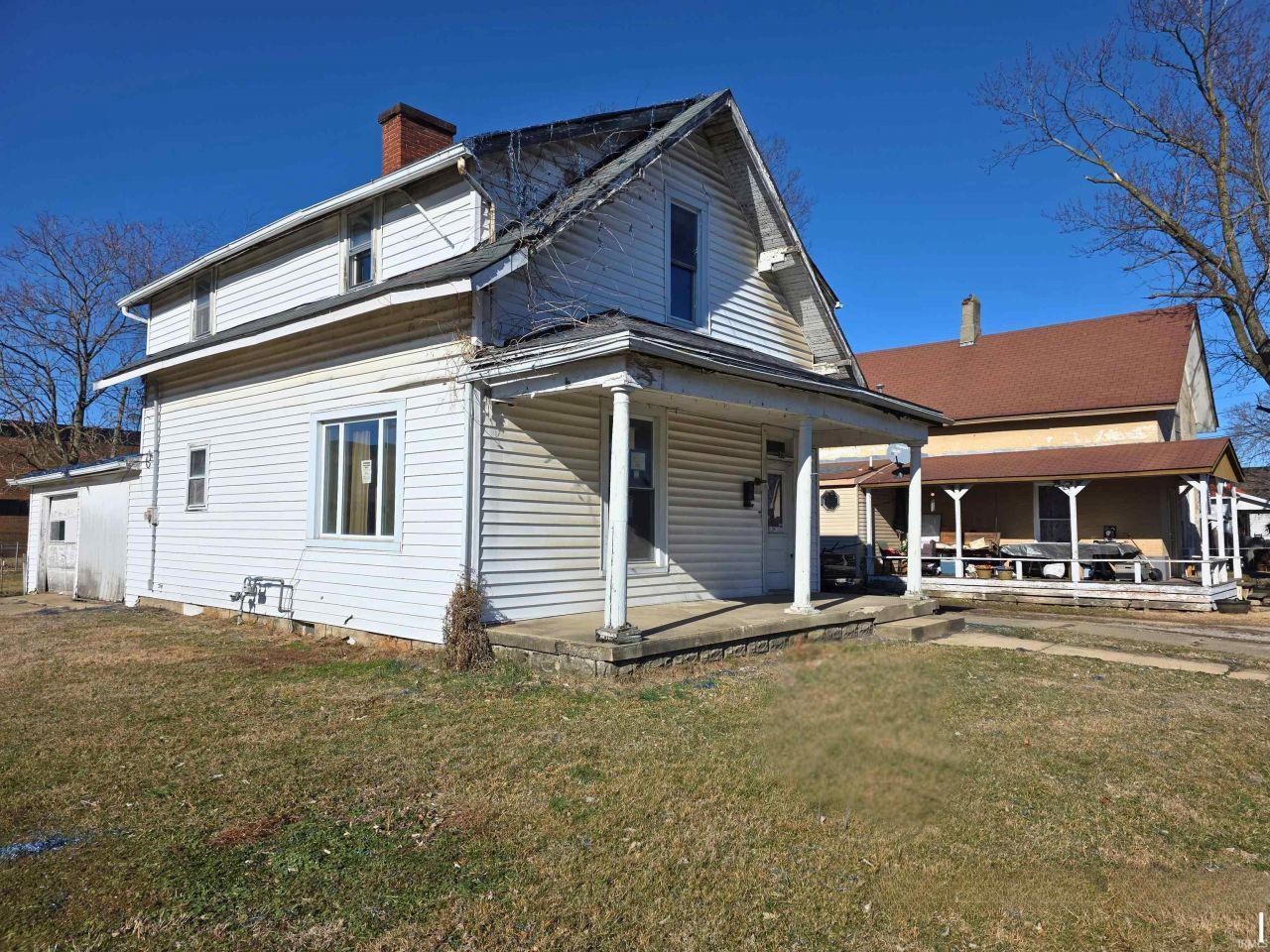 Incredible opportunity on this two-story home in the heart of Edinburgh. Across from elementary school and blocks to parks, shopping, highway. Located on corner lot with fully fenced rear yard. 2 Garages - 1-car detached and 2-car attached. 3 Bedroom/1.5 Bathroom layout. Interior features grand entryway, raised ceilings, Dining Room, Great Room with brick fireplace, eat-in Kitchen. Plenty of storage in unfinished basement. Master Bedroom includes walk-in closet. Needs updates and repairs but has tremendous upside. This is a must see!