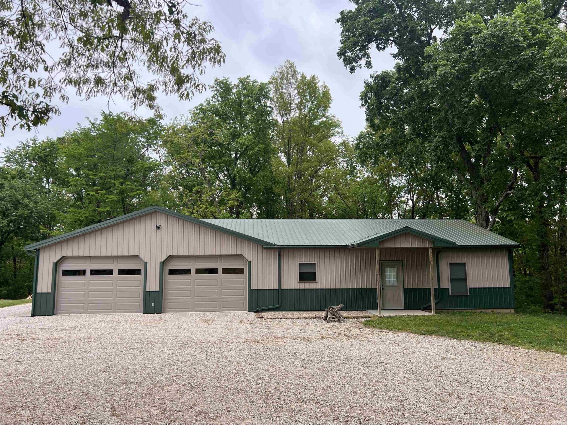 Live and breathe on your own 24 acre ranch with this pole barn home that comes with a 26 x 40 barn and pasture for horses and other animals. You will appreciate this owner's quality workmanship and fine materials throughout: 9' tongue and groove wood ceilings, stamped concrete floors, designer kitchen, tiled shower and knotty pine walls. Everything is like new in this warm and cozy 2 bedroom, open concept living space, extending to a covered back porch to take in the beautiful views! There is plenty of extra space in this two car garage for a work area/man cave w/an attached wood shed to maintain the wood stove. This property has endless possibilities: mini farm, hunting lodge, ATV trails or hiking. Whatever your hobbies might be there is plenty of room to wander...conveniently located close to an airport, French Lick entertainment and recreation at Patoka Lake. You will feel like you are home on the range!