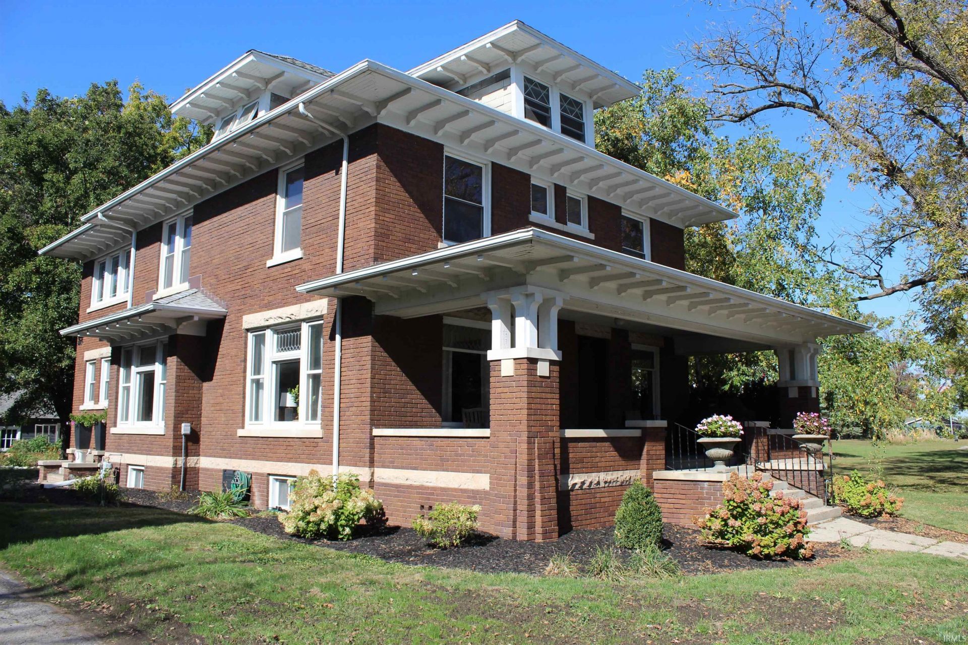 Step back in time while enjoying all the space and comfort of today in this magnificent 1915 brick home. With over 3,800 square feet of living space, this property blends historic charm and craftsmanship with modern flexibility. From the moment you walk through the door, you'll be captivated by the gorgeous original woodwork, intricate trim, hardwood floors, and coffered ceilings that showcase the quality and artistry from a timeless era. The home offers 4 spacious bedrooms and 2.5 bathrooms, providing plenty of room for family and guests. The finished third-floor attic is a wonderful surprise ? perfect as a playroom, home office, art studio, or cozy retreat. The large covered front porch invites you to relax and take in the view, while the detached 2-car garage adds convenience and functionality. Nestled right next to the town park, this location is ideal for enjoying community events, morning walks, or afternoons at the playground. Plus, with easy access to I-65, commuting or traveling couldn't be more convenient. This is more than just a house ? it's a piece of history lovingly maintained and ready for its next chapter.