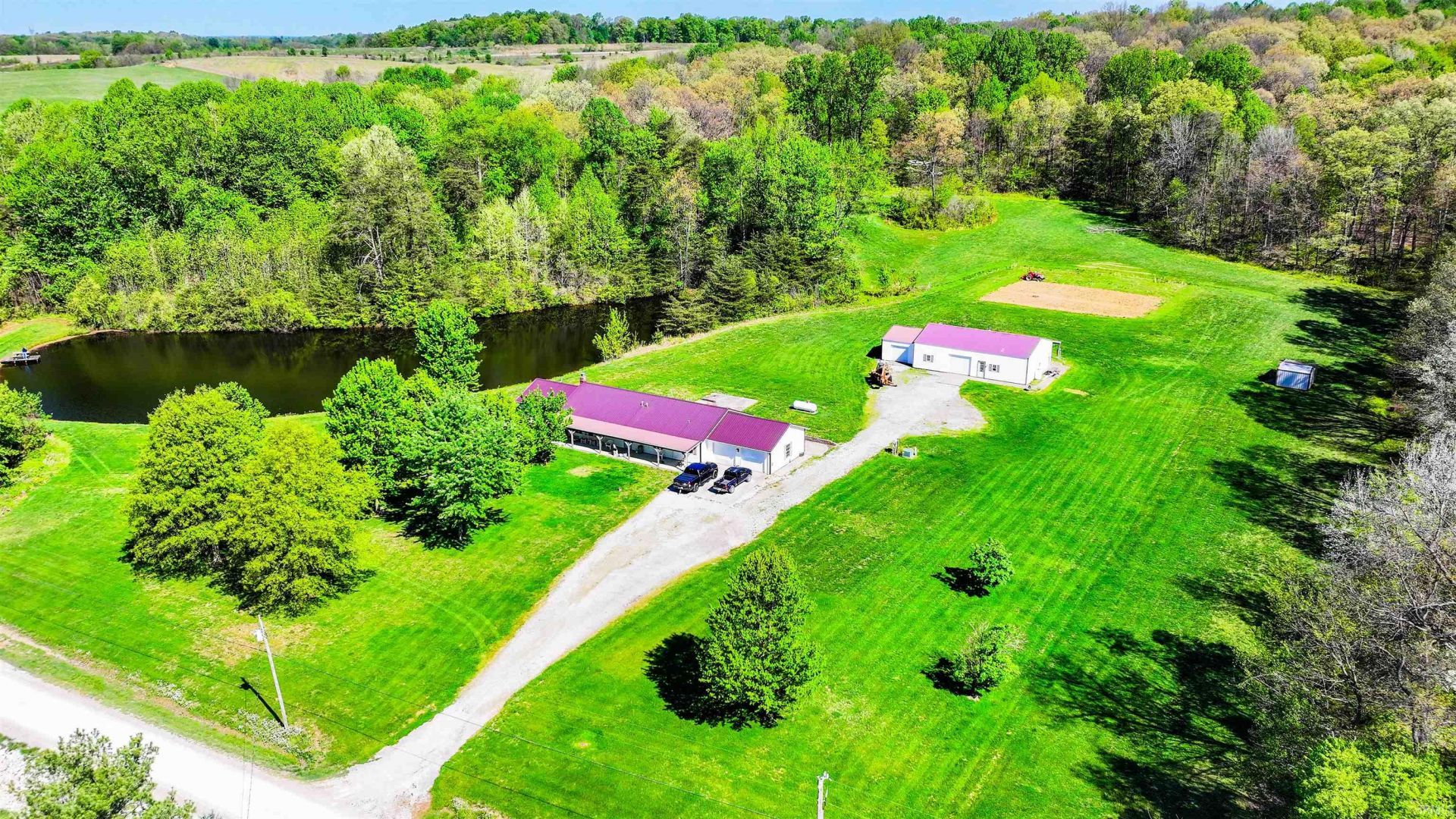This beautiful 40+/- Acre property is in a very desirable location in Greene County. Only minutes from I-69, 30 minutes from Bloomington or Bedford and just a few minutes from Crane Naval, enjoy all that country life has to offer but still only a short drive to town or work. This well-built 3 bedroom/2.5 bath country home sits near the entrance to the property, has over 2400 sq. ft. of living space on one level, open concept from kitchen to great room and dining area. Perfect size for a family and ready for a new owner to update and add its own touches to it. The 2-car attached garage has plenty of room for vehicles/equipment/ATVs. The covered front porch is a perfect place to sit and enjoy the cool summer breezes and country views. Behind the home is a large pole barn with 1900+ sqft. It has concrete floors and would make a great workshop and additional space for boats/tractors/equipment and other toys. It also has a kitchenette with a bathroom and has water/electric/septic running to it, it could be converted into additional living quarters or guest quarters. All around the home sits the many acres of wildlife sanctuary. This beautiful land is a diverse mixture of young and mature hardwood timber and a few brooks running through it provide a water source for the wildlife. Enjoy hiking or ATV riding on your very own land. From all the signs in the woods, this land will provide great hunting for deer, turkey, small game and morels. Next to the home is an eye-catching 1+/- acre pond that provides good fishing for bass, bluegill and crappie. Also, a great place to just sit, relax and enjoy the water views or go for a swim. Property is being sold 'As Is. Don't let this opportunity slip by.