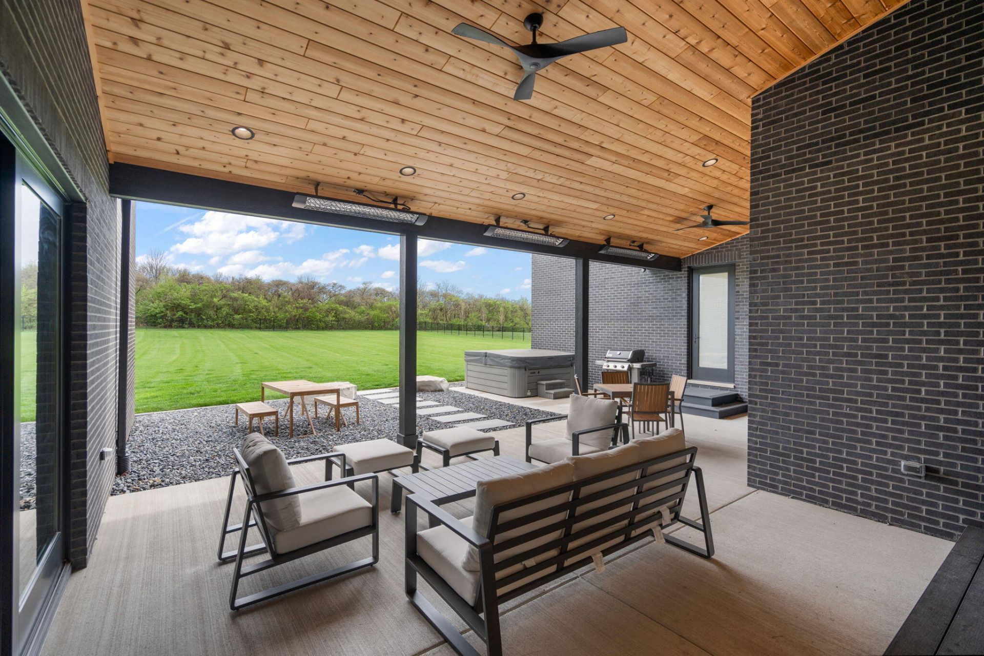 This custom-designed ranch estate on a private tree-lined one acre lot in the exclusive gated community of Graythorne Estates is nothing short of exceptional! Showcasing soaring 17' vaulted ceilings and 16' Andersen patio doors, the home is filled with natural light and elevated design. Radiant heated floors span much of the interior, covered back patio, and garage complemented by handcrafted European-style cabinetry and stunning Taj Mahal quartzite countertops. Impeccable curb appeal with a spacious covered front porch, grand front door, and impressive foyer entrance. A private office is perfectly situated for working from home or creating your own personal study. The open-concept living space features panoramic breathtaking views, fireplace with Roman Clay finish and a white oak slat accent wall, seamlessly flowing into a designer chef's kitchen with River Woodworking cabinetry, oversized eat-in quartzite island, lux accent lighting, Pro Series KitchenAid appliances, and a walk-in butler's pantry with prep sink, beverage cooler, and ice maker. The primary suite offers a true retreat with private patio and hot tub access, spa-inspired bath, and an incredibly expansive custom walk-in closet with direct laundry room access. The laundry room itself delivers total Pinterest-board vibes. All bedrooms include private en-suites with radiant heat and walk-in closets. Designed for both relaxation and entertaining, enjoy a three-season temperature controlled covered patio with barrel ceiling accents, perfect for relaxing with a glass of wine while watching deer and picturesque sunsets, plus a versatile golf simulator suite with 14' ceilings and exterior patio access. Additional highlights include a full unfinished basement with radiant heated floors and bath rough-in, 3 egress windows, dual 3-zoned mechanicals, & an oversized 3.5-car heated garage. The premium meadow lot allows for a future outbuilding. A true luxury retreat--designed to impress along with competitive taxes!