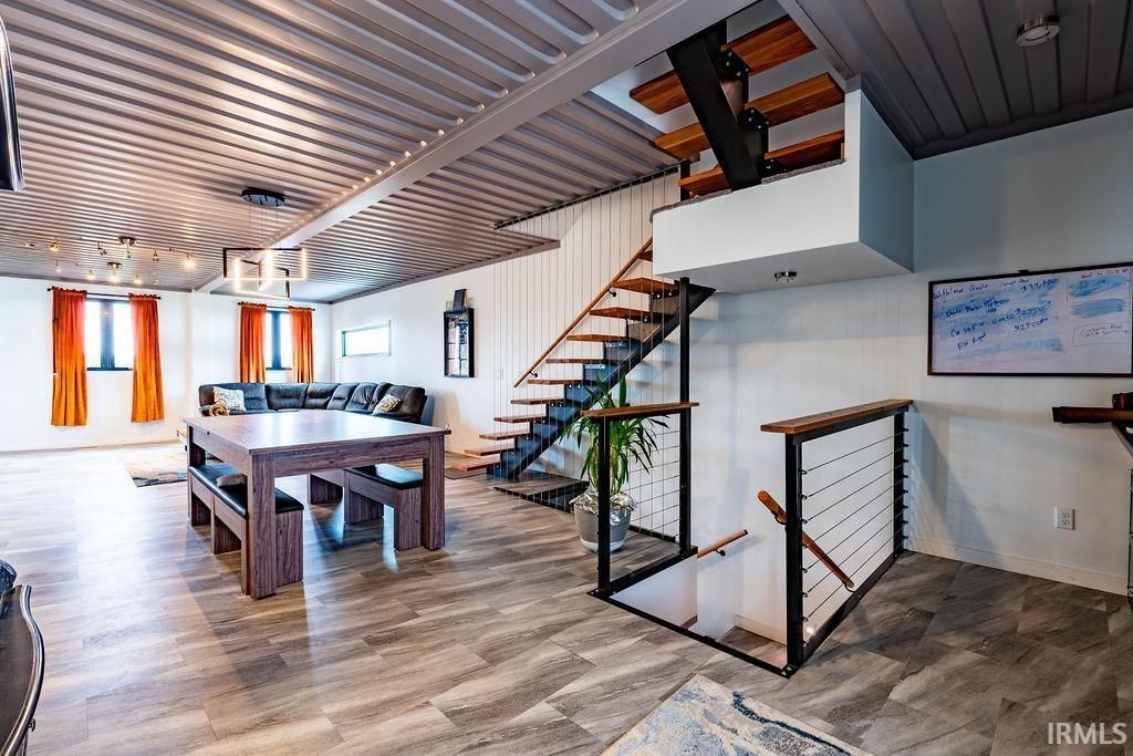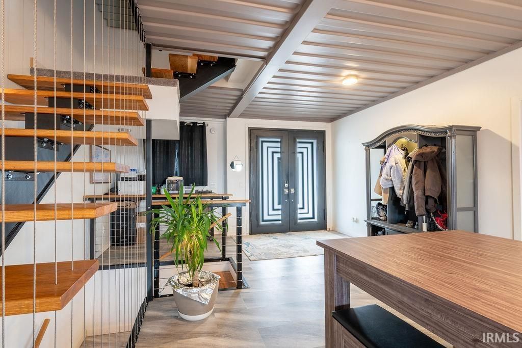 Modern 3-story shipping container home in the heart of Markle offering a unique blend of contemporary design and small-town charm. This 3 bed, 3.5 bath home features an open-concept layout, abundant natural light, and stylish finishes throughout. Enjoy outdoor living with a covered front porch, covered back patio, and a private balcony off the master suite. Situated on nearly an acre, the property includes a 56x40 shipping container workshop with car lift?perfect for hobbyists, storage, or home-based business use. Conveniently located near Interstate 69 with quick access to Fort Wayne (15 minutes) and close to the new Indiana University Health medical center. Rare opportunity for modern living in a relaxed, small-town setting! QUALIFIED BUYERS ONLY FOR SHOWINGS !