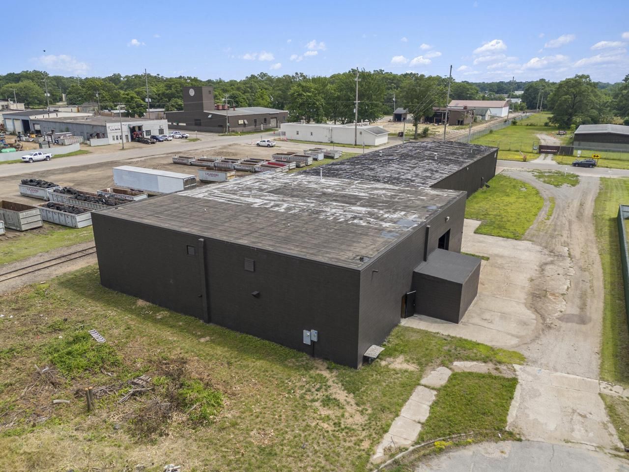 This property features an open-span steel building with two electrical meters, offering a versatile space for various business needs. The building boasts ceiling heights ranging from 18 to 24 feet and includes a convenient loading dock. The total space is 16,000 square feet, with a 10,000-square-foot front section and a 6,000-square-foot back section, connected and divided by an overhead door.The front office space includes three office rooms and three half baths. Situated along the railroad tracks, this location can be advantageous for businesses requiring rail access. The roof is made of durable metal and rubber materials. Additional land behind the building provides opportunities for storage expansion or additional parking. The property encompasses a total of 7 lots and is zoned D1 industrial.
