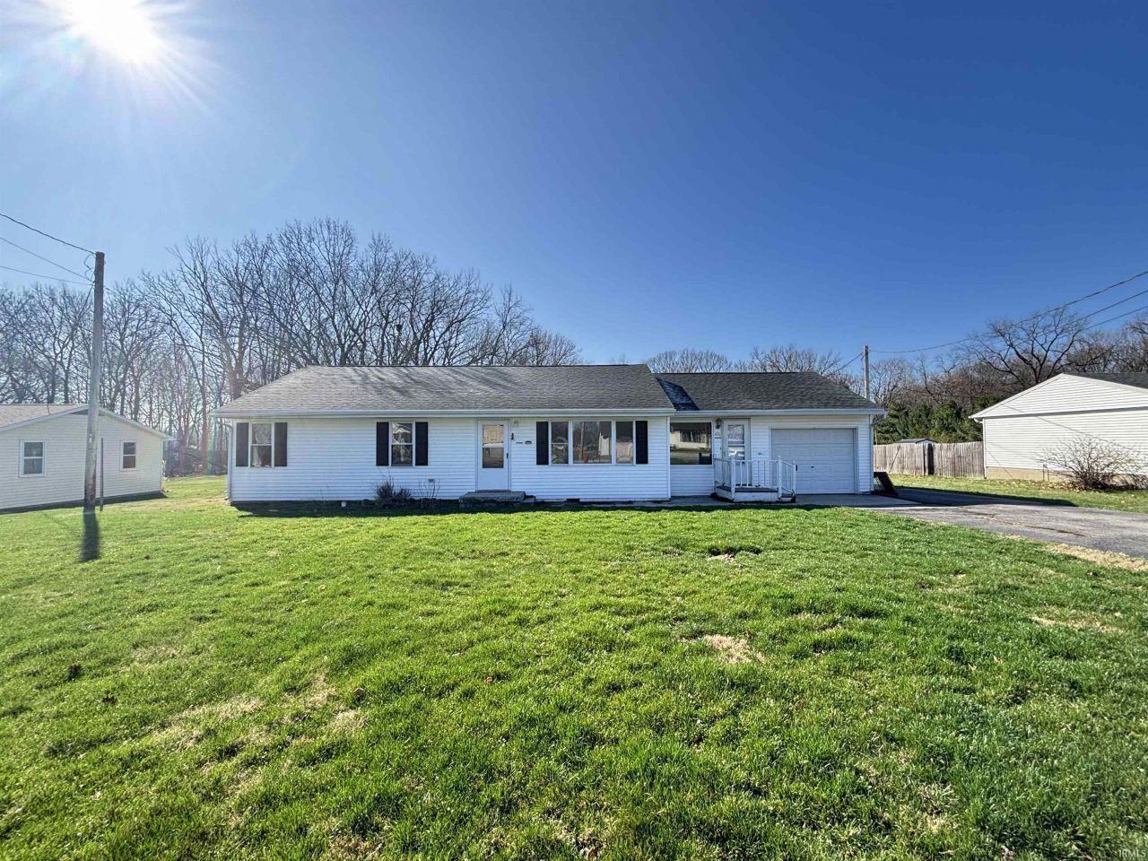 Enjoy small-town living with a country feel in this charming 3-bedroom, 1-bath ranch. The home features both an attached one-car garage and an additional detached one-car garage, offering extra storage or workspace. Recent updates include new flooring in the kitchen, dining room, laundry room, and bathroom, along with updated baseboard heaters in the kitchen, dining room, and bedrooms. New lighting has been installed in the kitchen and dining area. The stove and refrigerator will remain with the home, making this property move-in ready and a great opportunity for buyers looking for comfort and convenience.