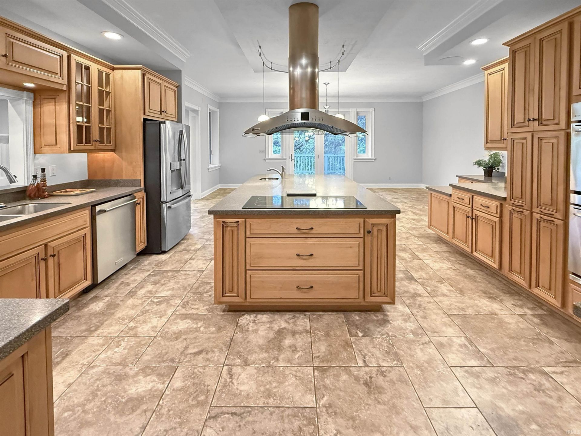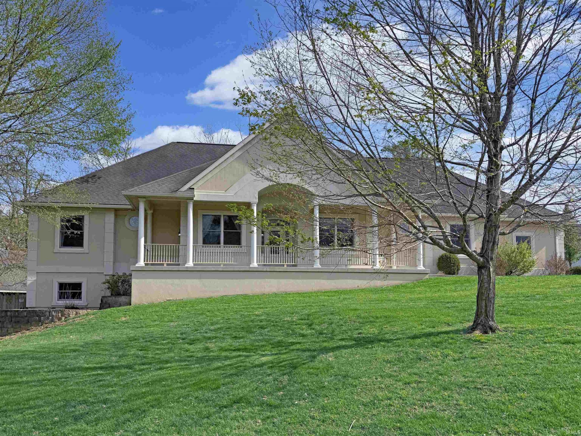 Quality features and design at this stunning 5BR / 4FBa /2HBa home Only 8-10 minutes to downtown Bloomington and IU Campus, the home offers 1.18 Ac+/- that offers the perfect combination of lawn and woods.. Light and bright with its expansive Andersen windows and patio doors. The home offers 10-ft ceilings and open design. The home offers 'move-in condition' and neutral tones throughout plus hard surface flooring including luxury vinyl plank and custom tiling. Custom kitchen offers gorgeous maple cabinetry, huge island, built-in stainless appliances and new induction range. The kitchen is open to the dining room and offers extra seating at the large island. The living room is inviting and offers backyard and deck view. It offers stately fireplace w/custom hearth & mantel plus a 58000 BTU gas fireplace. Built-in cabinetry in the living space is the perfect place to showcase favored art or pottery. There is a large laundry area with built-in lockers that one can hang coats and backpacks. Four bedrooms are found on the main level of the home. The primary suite is extra spacious and offers access to the deck. It offers a sumptuous bath with a air-massage tub and a huge custom tiled shower, double vanities and separate water closet. The huge walk-in closet offers custom cabinetry/shelves--a space for everything! The home offers a very large bedroom suite in the lower level that has a generous full bath and walk-in closet within. The lower level is entertainment central with a large family room area, room for billiards or ping pong plus media area, exercise room, and an office space in addition to the suite. Large covered porch, the expansive composite deck, patio and hot tub (negotiable) plus an outbuilding that one could easily make into an outdoor pool house or screened gazebo area are features that make this home a virtual outdoor oasis! There is a 3-car garage plus plenty of storage space. It offers hydronic heat plus forced air, as well. The home was built with energy efficiency in mind from its EIFS exterior to the double-wall construction with spray foam insulation between the walls. Andersen windows and several sets of full view Andersen patio doors provide abundant natural light throughout. The home was built with energy efficiency in mind from its EIFS exterior to the double-wall construction with spray foam insulation between the walls. Andersen windows & patio doors. A must see!