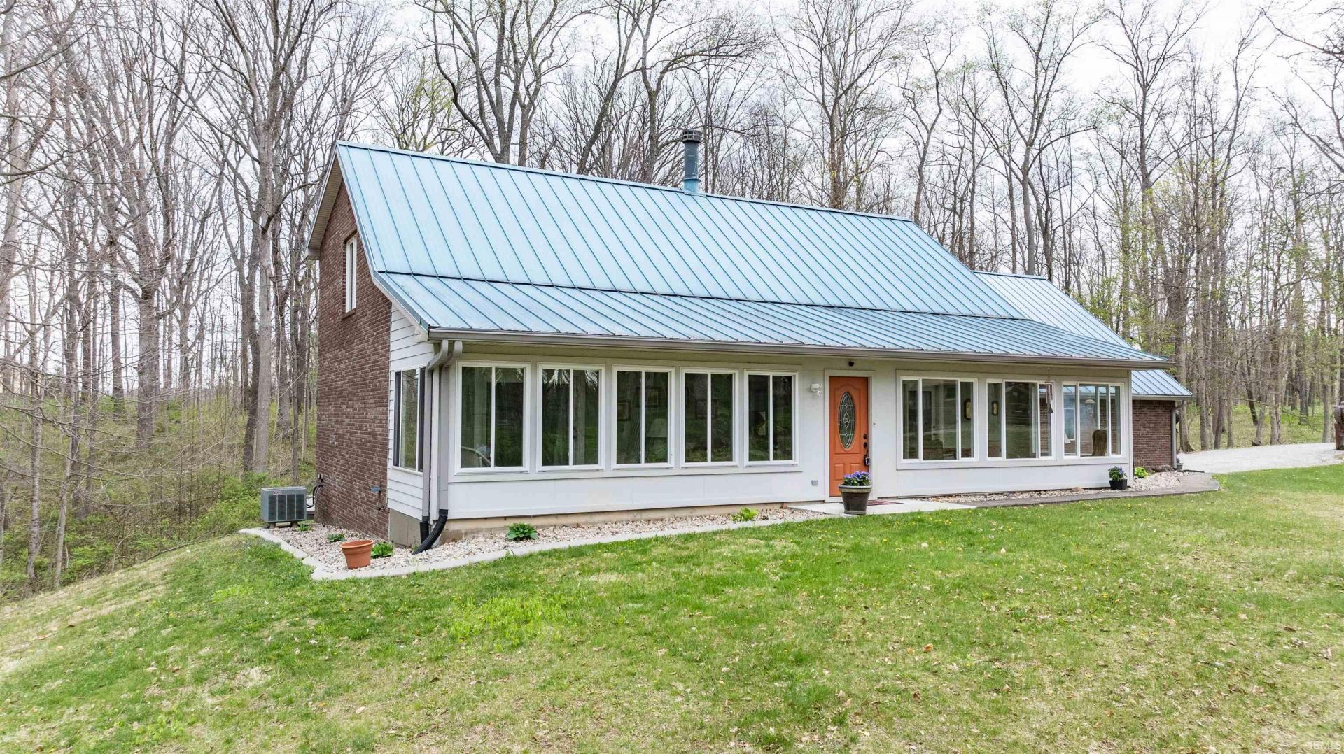 A delightful secret awaits discovery at 514 Redbud Ln., where an attractive property in great condition is poised for grand adventures. The living room is an architectural marvel, reaching skyward with a high, vaulted wood ceiling that creates an expansive feeling, while a charming fireplace provides a cozy focal point. Elegant crown molding adds a refined touch to this inviting gathering space. Culinary dreams come to life in the kitchen, featuring a stylish backsplash and shaker cabinets that frame a sophisticated stovetop. A magnificent large kitchen island and a convenient kitchen bar invite lively conversations and effortless entertaining, all beneath a beautiful wood ceiling. The gleaming stone countertops perfectly complement the high-end refrigerator, ensuring every meal preparation is a joyous occasion. Retreat to a private haven where a distinctive wood wall adds warmth and character to a well-appointed bedroom. The refined crown molding enhances the serene atmosphere, and the convenience of an ensuite bathroom offers a personal sanctuary for relaxation. One of the three full bathrooms presents a spa-like experience with a beautifully tiled walk-in shower, promising refreshing starts and soothing conclusions to any day. Beyond the interiors, the vast outdoor domain unfolds across an impressive 5.23 acre lot with rolling hills, and offers endless possibilities for Brown County-like enjoyment. Two welcoming sunrooms beckon for quiet moments, while a spacious deck, complete with an outdoor dining area and a dedicated outdoor living space, sets the stage for delightful gatherings. The finished basement of this home offers a living room, bedroom, and theater room. An unfinished mechanical room allows for ample storage as well. Additionally, a recently renovated living space is located above the huge three car garage that offers full bathroom as well. Wild life are know to frequent this property, making this a truly hidden gem in New Castle.