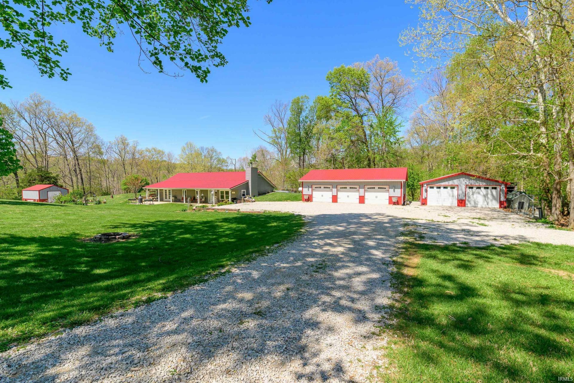 Ever dreamed of a homesteading life or a home that truly stands out? Located just North of Ellettsville, close to Bloomington & I-69, this unique ranch home offers the perfect blend of privacy and character. Set on 3 pristine acres, you'll enjoy wide-open views and some of the brightest starlit nights in the county. Designed for maximum efficiency, this home utilizes the earth's natural insulation to stay cool in the summer and cozy in the winter. South-facing windows and strategically placed skylights flood the interior with natural light?even on the grayest winter days. There are 3 spacious bedrooms, plus a versatile office/playroom and 2 full baths. The great room with its cozy fireplace, expansive space with vaulted ceilings is the heart of the home, perfect for gatherings. The kitchen features quartz countertops and an oversized farmhouse sink. The onsite barn/workshop is wired with electricity for your next project. In addition the property has a 20x14 shed/workshop, oversized 3 car garage, 2 car garage and a greenhouse. With 3 acres, there is ample room for gardening or other hobbies. Smithville Fiber provides cable/internet.