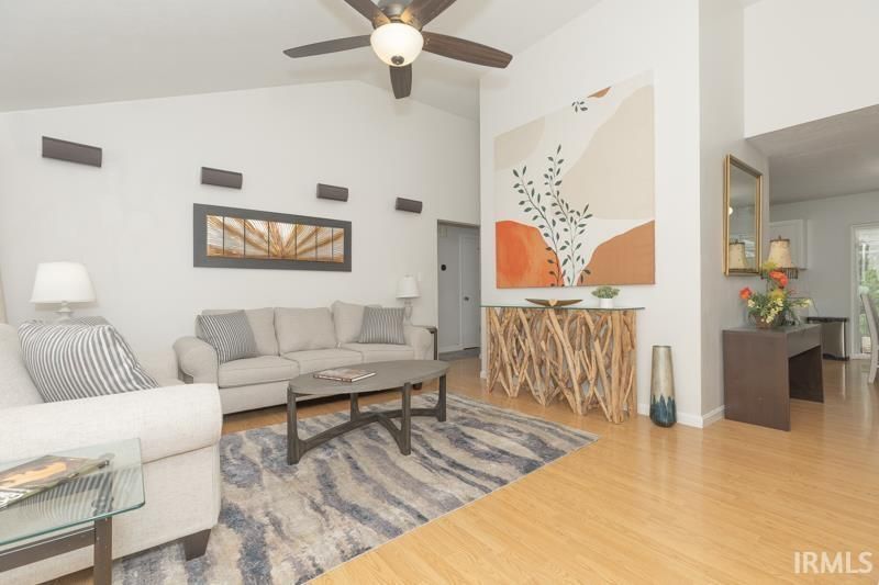 Updated, like new, and designed for easy living, this low-maintenance ranch built by Eagle Construction is tucked away in the peaceful Summit Pointe neighborhood. Offering three bedrooms and two baths in a desirable split-bedroom layout, the home features a fresh, modern feel with updated doors, hardware, and new tile flooring in the baths and pantry/laundry room. Laminate flooring flows throughout the living spaces and bedrooms, while the vaulted ceiling in the living room creates a bright, open atmosphere. The kitchen and dining area are seamlessly connected, with stainless steel appliances?including the refrigerator?alongside a stylish new backsplash and freshly painted cabinets. The primary suite is a comfortable retreat with an extra window for added natural light, an updated bath, and a walk-in closet. Major updates like the HVAC system and roof add peace of mind. Just off the kitchen, a patio with trellis is enclosed by a privacy-fenced area of the backyard, perfect for an outdoor living space.