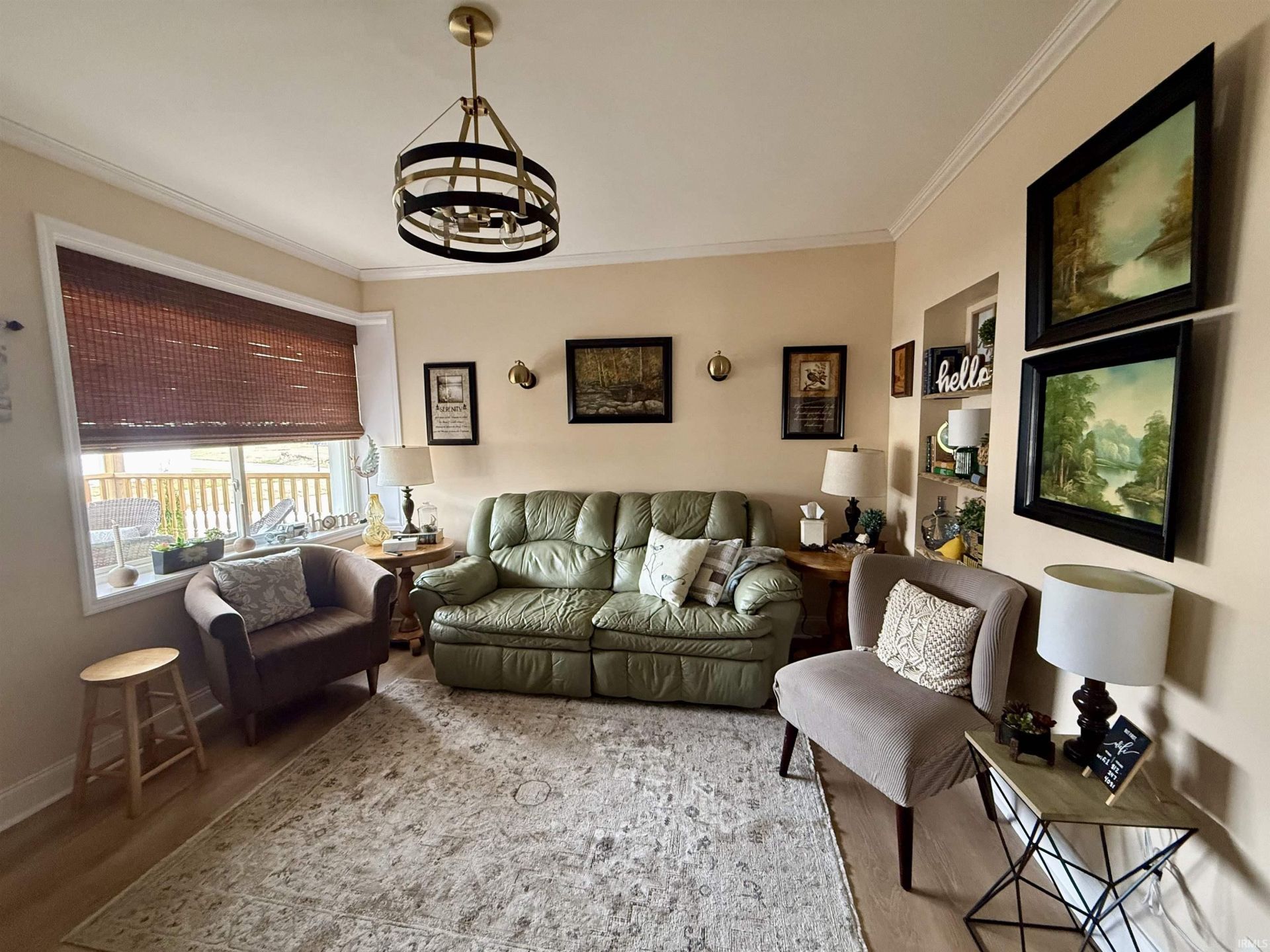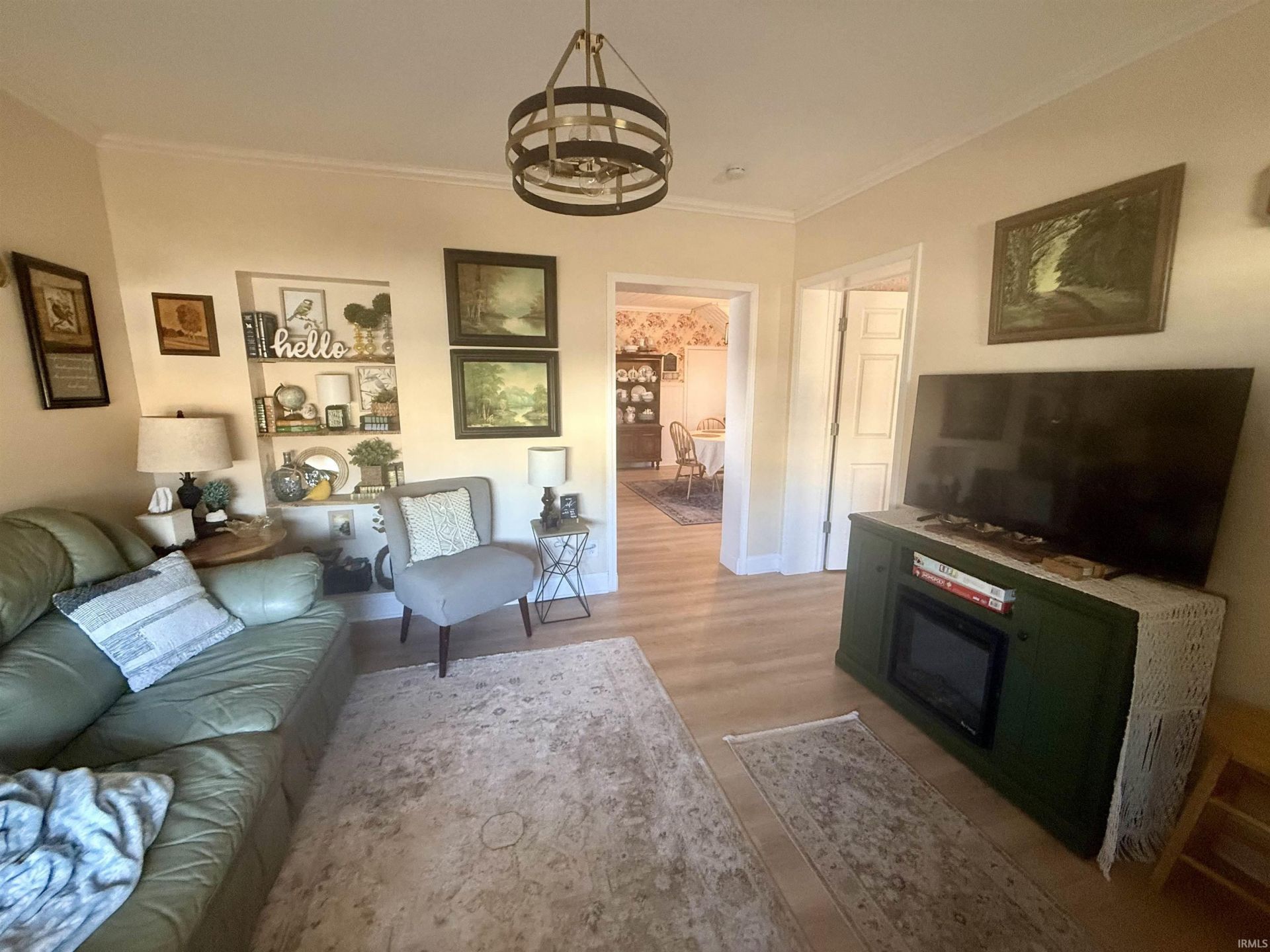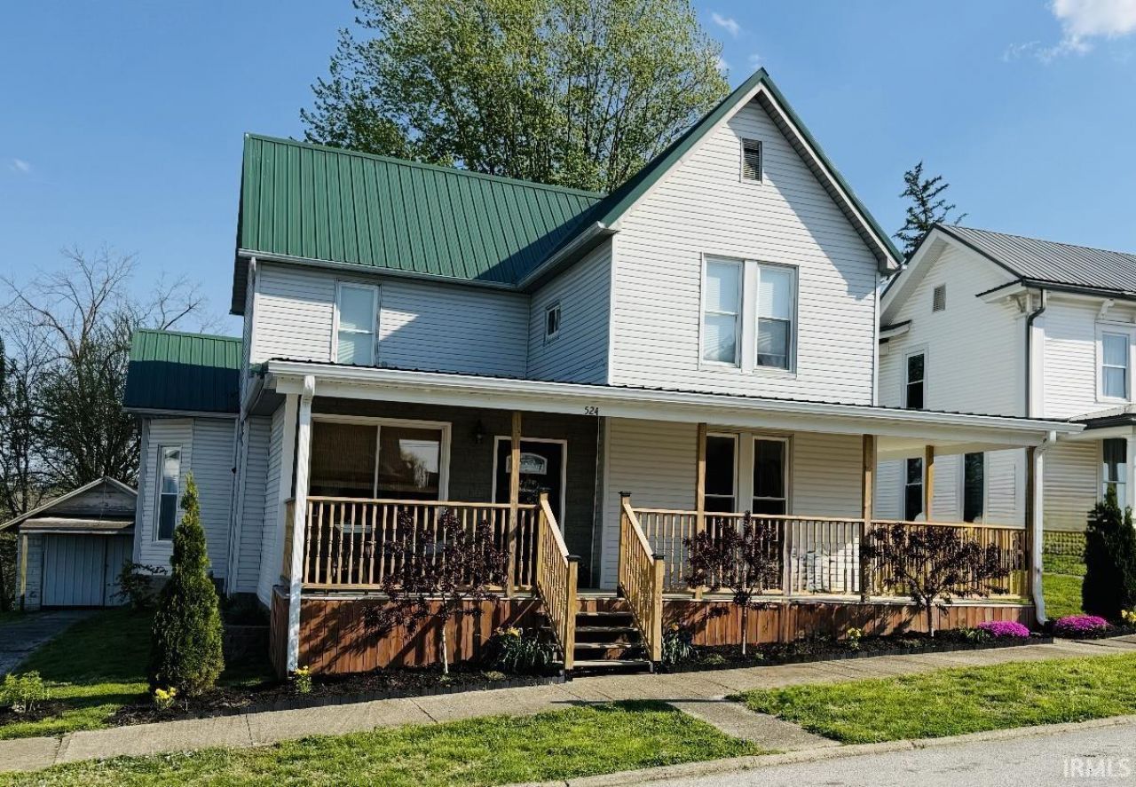 The Marigold House is a recently renovated, fully furnished property located in Shoals. Previously utilized as an Airbnb, this 4-5 bedroom, 3-bathroom home features a blend of modern updates and Victorian Era charm. Key features include a large eat-in kitchen that acts as a central gathering place, with exposed brick, all new cabinets, and appliances. Also on the main level, you'll find the living room, 2 bedrooms, an office/additional bedroom, and 2 full baths. Upstairs is a family room, 2 bedrooms along with an additional full bath. Skillful renovations provide complete updates including new HVAC, plumbing, new floors, and new pine ceilings. This completely furnished home embraces the past with grace, combining country warmth with ornate details. The exterior provides a new wrap around porch, a new roof, updated flowerbed, and a detached garage. Close to Bloomington, and French Lick and all the great amenities that they provide, and only a 25-minute drive to NSWC Crane.