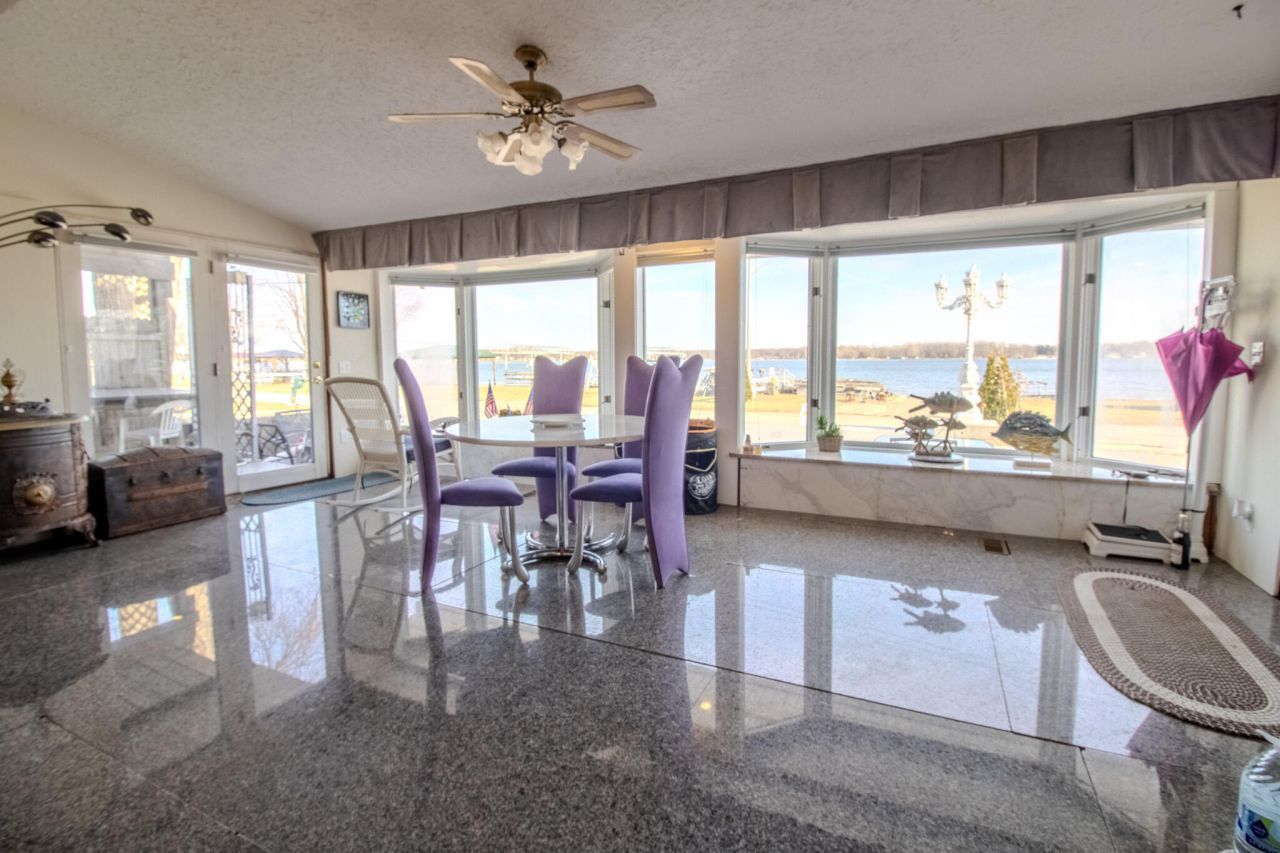 4100 SF HOME WITH 50 FEET OF PRIME BASS LAKE FRONTAGE AND PRIVATE CONCRETE BOAT LAUNCH. Home features real marble and ceramic tile flooring, many windows with incredible lake views, large kitchen with all commercial appliances, formal dining room, spacious living room with lake views, 7 bedrooms and 4 baths. Home has custom lighting, zoned heat for efficiency plus large patio on the first floor and a deck off the master bedroom on the second floor. An added feature is an amazing outdoor kitchen for cookouts. There is also an attached 2 car garage.