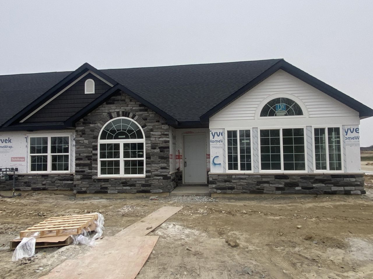 Completed Home! MOVE IN READY !!! Maintenance Free One Level living in Winfield's newest offering Wyndance Springs located long established community of Wyndance! This bright, open concept villa features 2 bedrooms, an office and Large Sunroom. This 2 bedroom 2 bath villa is on Great lot with a pond view. The Large primary bedroom features tall Ceilings, big windows, a walk in closet, and ensuite with double vanity + walk in shower! There is also a 2nd generous bedrooms plus a office with French doors and cathedral ceilings. The Living room is Light and Bright and Wide Open to Dining Area, and Kitchen all with Tall Ceilings! The kitchen boasts tons of storage and 42' cabinets, counters, pantry, soaring ceilings and breakfast bar. The Kitchen, Living Room and Dining areas all Feature luxury vinyl plank flooring and cathedral ceilings! There is also an Awesome airy Sunroom with windows on 3 walls, and cathedral ceilings. Over 1700 sq ft of living space! Plus a laundry/mudroom with closet and access from garage. The Garage is finished and has attic ladder pull down to access more storage. The Outdoor Patio area offers a nice outdoor sitting area! HOA fees cover lawn/yard maintenance and snow removal. Great Location in Winfield of Crown Point with close access to Highways and an close drive to all Crown Point has to Offer! -Maintenance free for you to relax and enjoy!! Some Photos are of other finished units. Colors and finishes may vary.