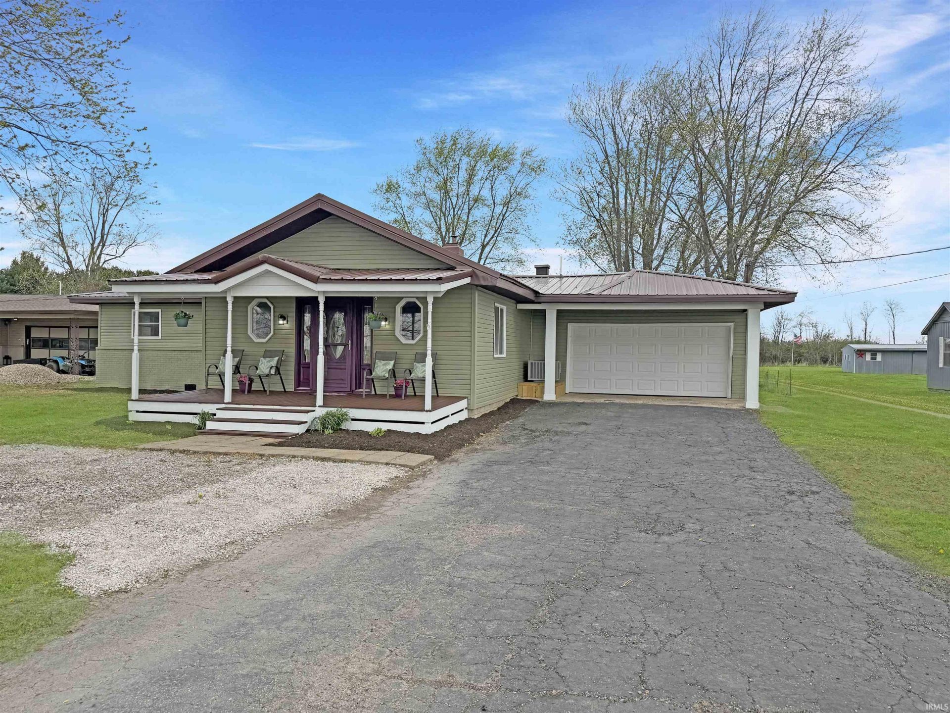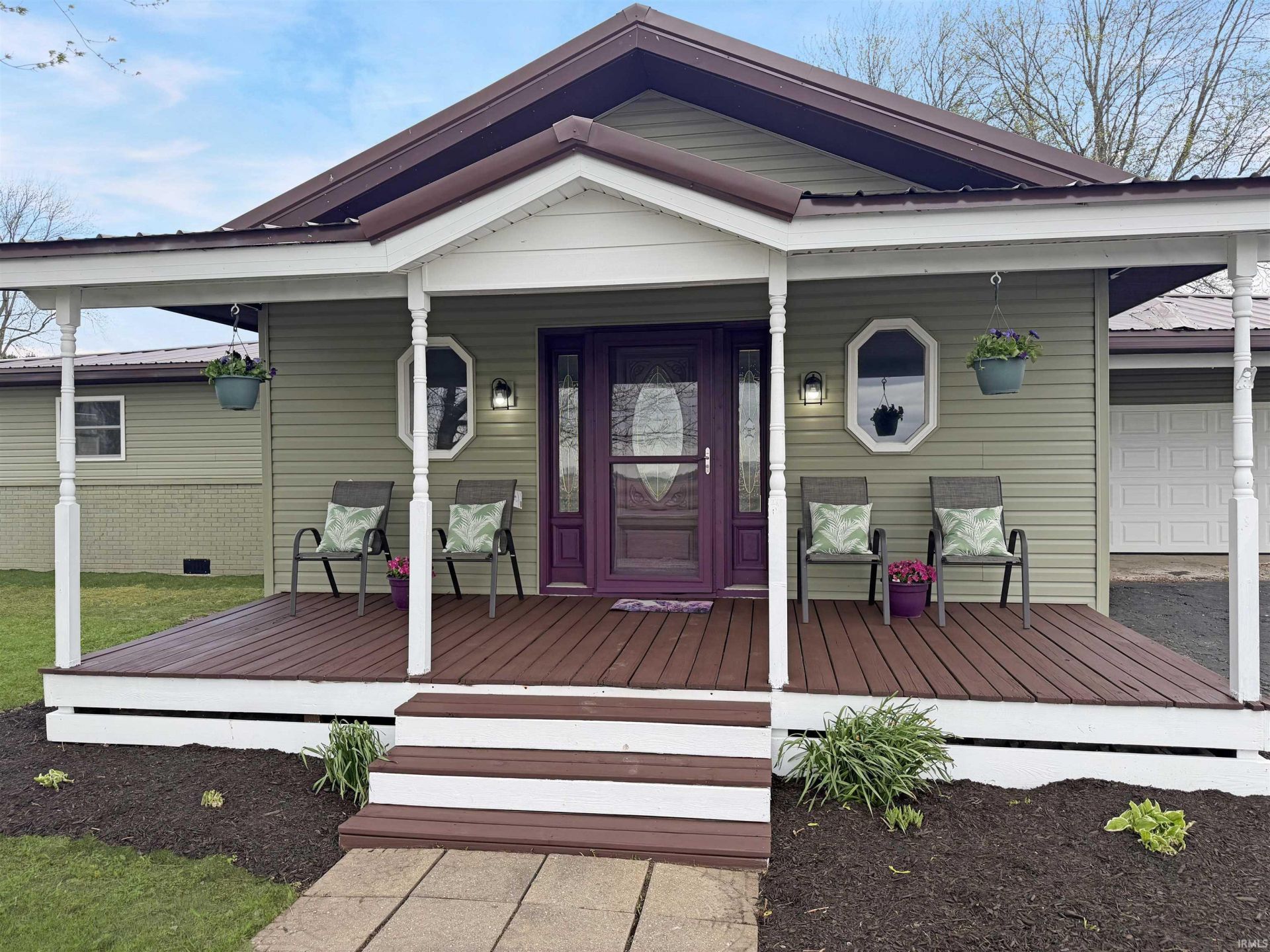 Welcome to this beautifully updated home in the heart of Kirklin, offering the perfect blend of character, space, and modern updates throughout. From the moment you arrive, the inviting front porch sets the tone, ideal for relaxing and enjoying the peaceful surroundings. Inside, you'll find a spacious living room featuring vaulted, beamed ceilings that create an open and welcoming atmosphere. The fully updated kitchen showcases modern finishes and flows seamlessly into the dining area, making it perfect for both everyday living and entertaining. Both bathrooms have been tastefully renovated with a clean, contemporary design. Numerous recent updates provide peace of mind, including new flooring, HVAC, plumbing, siding, appliances, and garage door with openers allowing for truly move in ready living. Conveniently located with easy access to Frankfort, Whitestown, Lebanon, and Sheridan, this home offers small town charm with proximity to nearby amenities. Don't miss your opportunity to own this thoughtfully updated and beautifully maintained property!