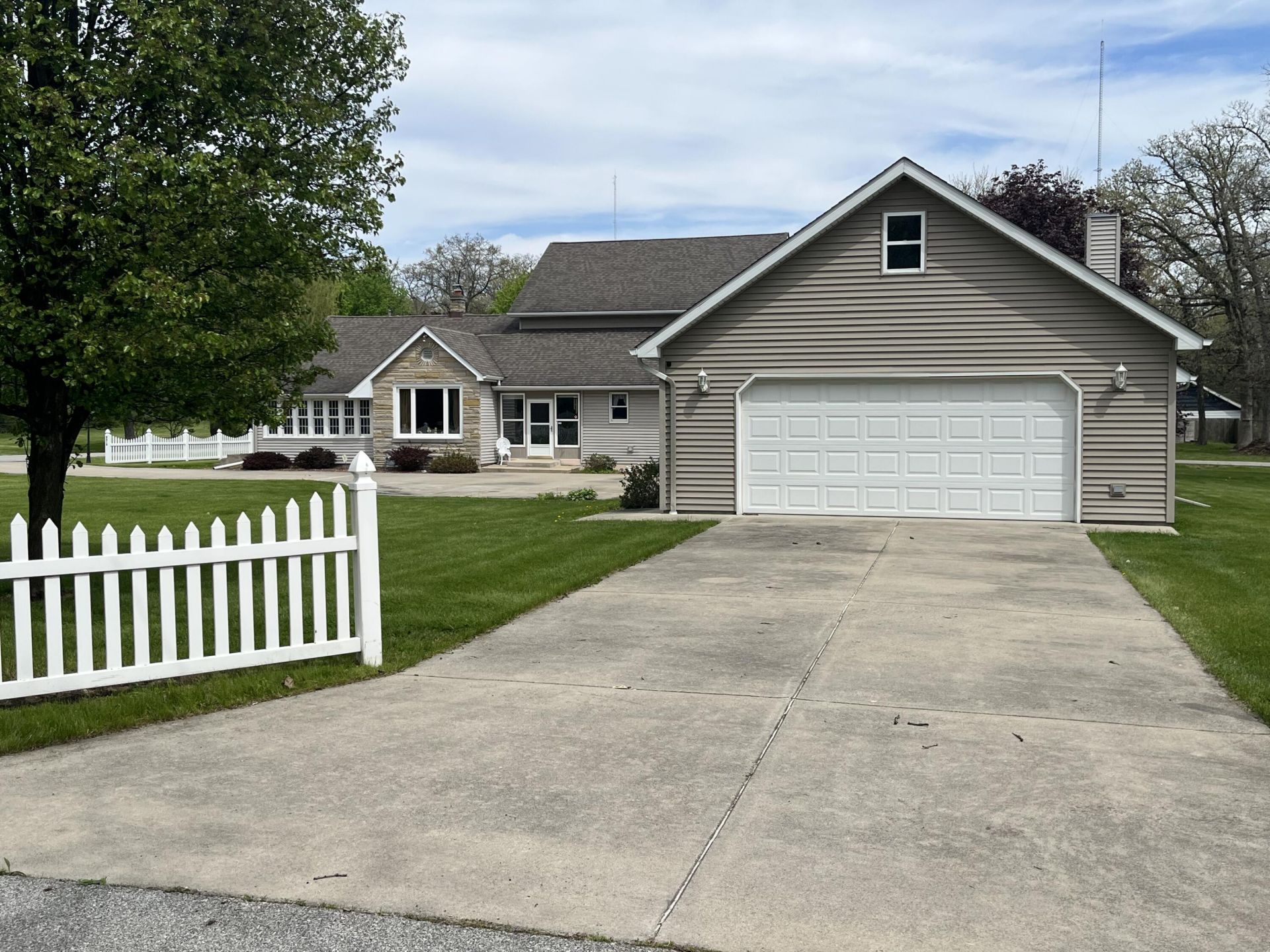 All updated home on one acre in Crown Point Unincorporated with an amazing 5 car garage with a roughed in area upstairs for a work shop. Lovingly maintained and ready to just move in. Partial basement with large finished Bonus Room. Main floor master bedroom with Full bath with separate tub and shower. Large mudroom on the west entrance, and a large Sunroom on the North Entrance. Large Lodge like Great room is where the party gathers with its Fireplace and Wood burning stove. Much of the main floor has a gleaming Hardwood finish. Formal Dining room is one the west side of the house and large window allows the sun to stream in. Also off of the Large kitchen area is an area which is currently used as a Dinette area but would made a cozy Family Room. The Kitchen has a large Eat at counter and a large pantry. There is a nice sized Deck on the East side of the house. You can chase the sun around all day! 3 car garage faces the north, and 2 car garge faces the west. Amazing amount of Concrete parking space. Lots of vinyl Fencing. 3 sides of yard have quiet road frontage. Not a lot of thru traffic. Other features, Main Floor Laundry room, On demand Hot Water Heater, Escape window in the basement. Stairs in Great Room Lead to a semi finished older attic area. Will be Cleaned out by closing. Please keep children out of both attic areas, In house and in garage Thank you.