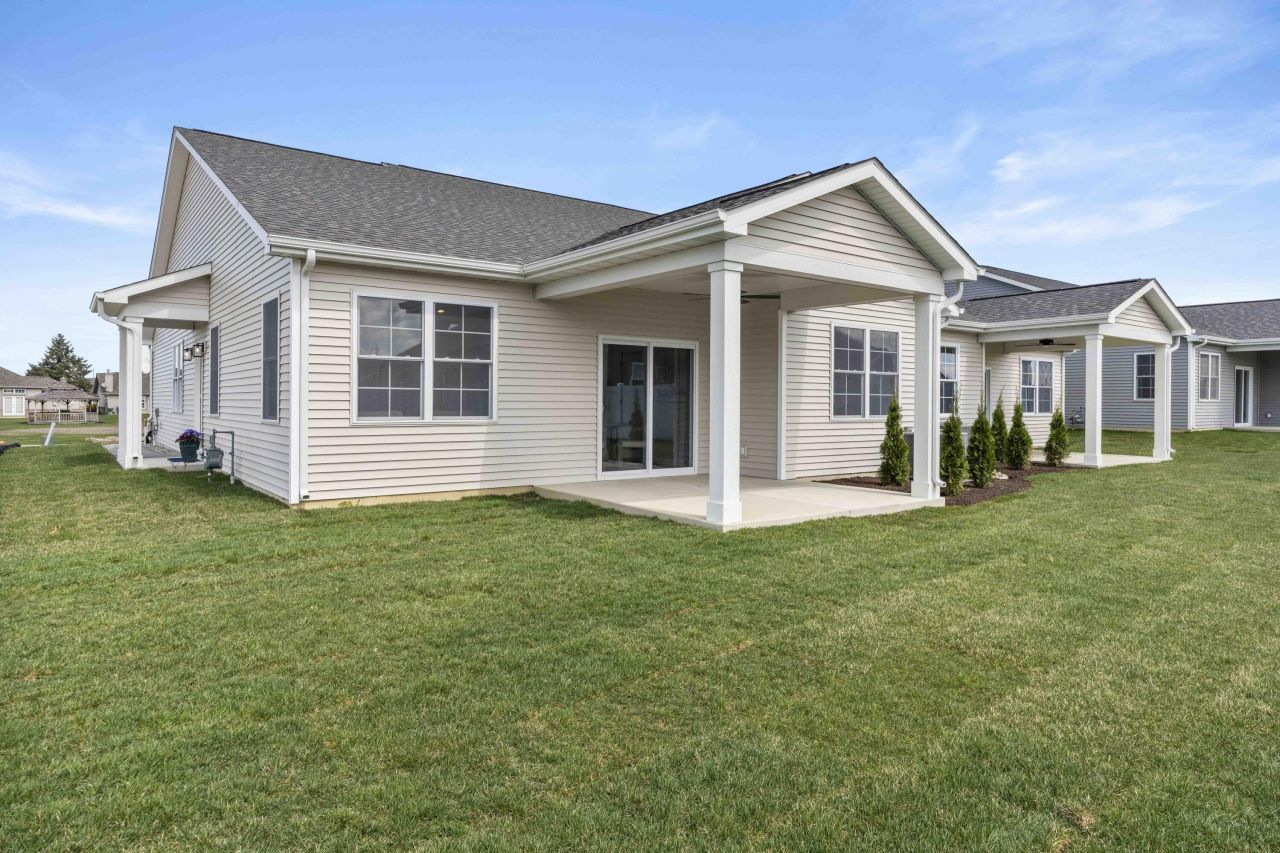 SALES MODEL. Our custom-built paired villas boast 3 spacious bedrooms, one with a flexible office setup. Open concept great-room, kitchen island, stainless steel appliances, and premium Silver Line windows that fill the 1500 square feet of living space with natural light. These Custom-Built Villas are packed with quality finishes, and future pre-sold units offer plenty of selections for owners who want a more customized home. Finished homes include Luxury Vinyl Plank, Tile, and Carpet Flooring. Kitchens with Quartz Countertops, soft-close cabinets and drawers, stainless steel kitchen appliances, laundry room with washer & dryer, Ceiling Fans in all Bedrooms and Great Room, Rubbermaid closet shelving, and stone masonry accents. Also includes 80percent Carrier Furnace, 14 Seer A/C, and 40gal hot water tank. In Future pre-sold homes, enjoy the vinyl planking floors throughout, or choose to have carpeting in the bedrooms. You'll appreciate the comfort of a finished, insulated garage, & the convenience of an over-sized back patio with options for enclosed finishes. Designed for a carefree lifestyle, these maintenance-free homes offer the perfect blend of comfort and sophistication. Residents of The Arbors are also invited to enjoy the Community Clubhouse, and outdoor pergola on the 2 maintained ponds.