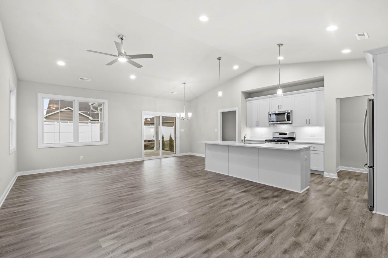 READY NOW! This custom-built paired villa offers exceptional quality and thoughtful design throughout its 1,500 square feet of light-filled living space. Featuring 3 spacious bedrooms, including one with a flexible office option, this home is designed for both comfort and versatility. The open-concept layout showcases a welcoming great room, a well-appointed kitchen with quartz countertops, soft-close cabinetry, and a large island--perfect for everyday living and entertaining. All stainless steel kitchen appliances are included, along with a washer and dryer, making this home truly move-in ready. Ceiling fans in all bedrooms and the great room add comfort and value, while Silver Line windows flood the home with natural light. Enjoy quality finishes throughout, including Luxury Vinyl Plank, tile, and carpet flooring, Rubbermaid closet shelving, and attractive stone masonry accents. Additional highlights include an 80 Carrier furnace, 14 SEER A/C, 40-gallon water heater, and a finished, insulated garage. One of the standout features is the large covered back patio, ideal for outdoor relaxing or entertaining--an upgrade that sets this home apart from neighboring communities. Two Juniper floor plan homes are ready now, with additional homes, pond lots, and new designs coming soon. Future pre-sold homes offer the opportunity to personalize finishes and layout options. Designed for a carefree lifestyle, these maintenance-free villas deliver the perfect balance of quality, comfort, and convenience.