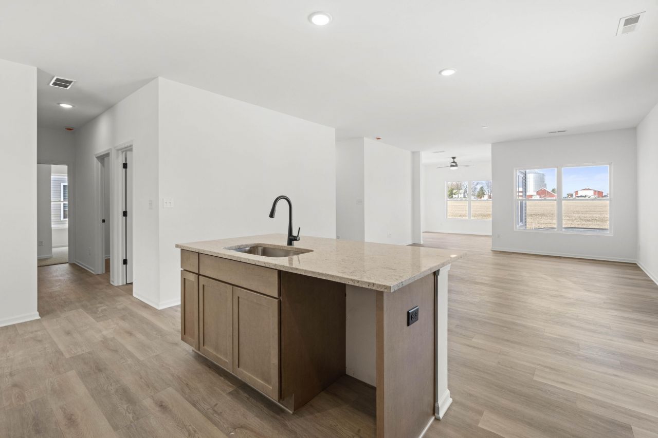 May/June Completion! Welcome to The Sterling, a thoughtfully designed ranch home located in Grand Ridge, a desirable low-maintenance community within the Crown Point School District. Perfect for right-sizing, downsizing, or anyone seeking easy single-level living, this new construction home offers comfort, style, and convenience. This 2-bedroom, 2-bath residence features 1,580 finished square feet of open-concept living with 9-foot ceilings and a functional layout designed for today's lifestyle. The spacious kitchen includes quartz countertops, a pantry, and a large island that flows seamlessly into the great room and sunroom--ideal for everyday living or entertaining. The sunroom opens to the backyard, creating a bright and inviting space with a sense of privacy. The private primary suite offers a walk-in closet and an ensuite bath, while the flex room provides versatility for a home office, hobby room, or guest space. Built on a slab foundation for ease and accessibility, this home supports a true lock-and-leave, low-maintenance lifestyle. Residents enjoy an HOA of 125 per month, which includes lawn care and snow removal, allowing you to spend more time enjoying life and less time on upkeep. Located just minutes from downtown Crown Point, shopping, dining, local amenities, and quick access to I-65, this home offers the perfect blend of small-town charm and commuter convenience. Ask about special builder financing and current promotions. Please note: Stock photos are used; actual home features and finishes may vary. Your new home awaits