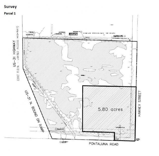 This large parcel is located in the ever-developing Harvey Street corridor, immediately east of US-31 in Norton Shores. Although comprised of approximately 22 acres, a recent wetland delineation suggests approximately 6 acres of useable upland exists right at the traffic-controlled corner of Harvey and Pontaluna. This site is in close proximity to The Lakes Mall and neighboring businesses such as Menards, Kohls, Meijer, Target and other national-brand retailers and restaurants. The site is mostly level and zoned PUD, with all utilities (including municipal water and sewer) immediately available. The location and zoning make the parcel suitable for a variety of development uses including office, retail and high-density residential.