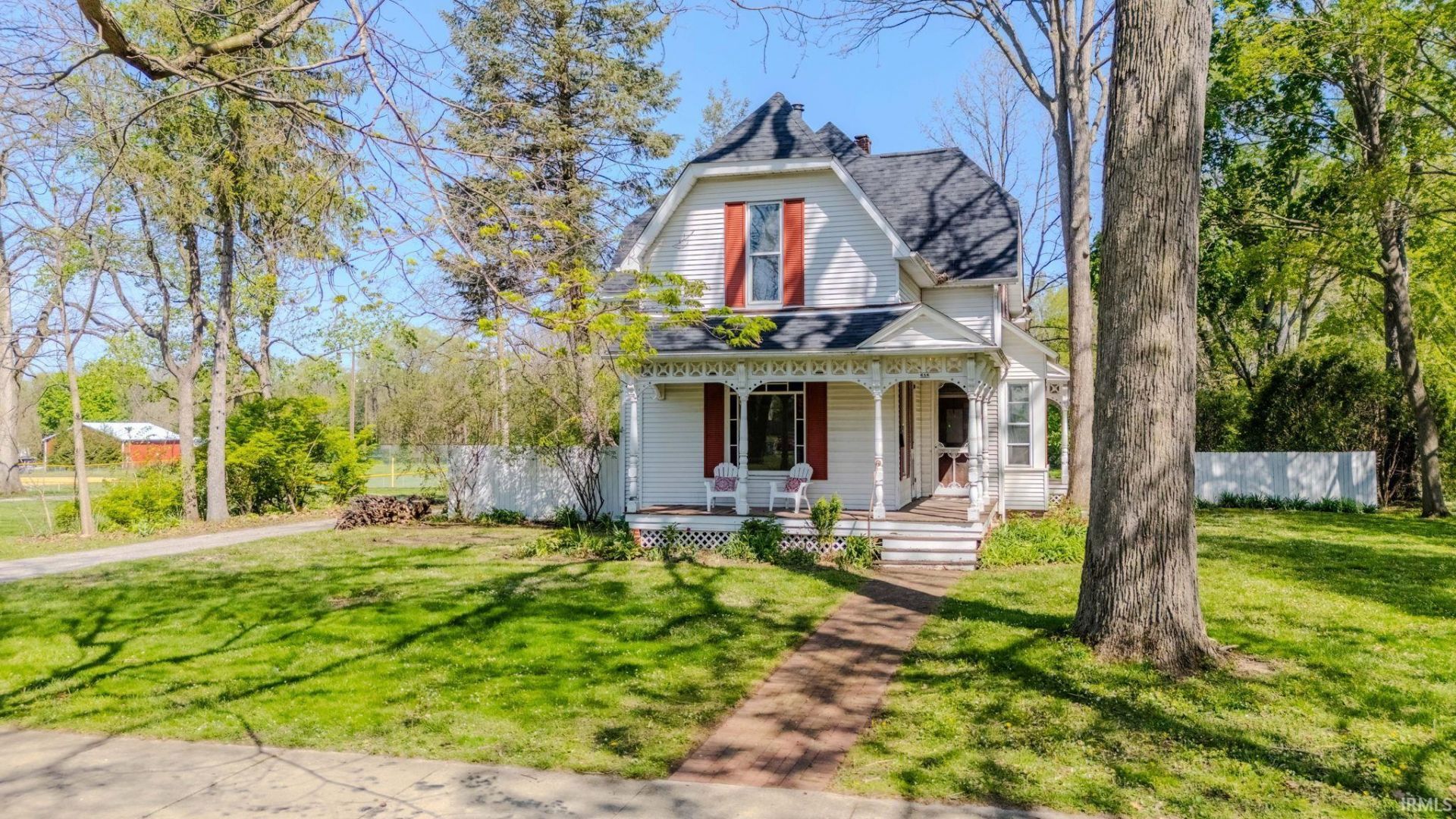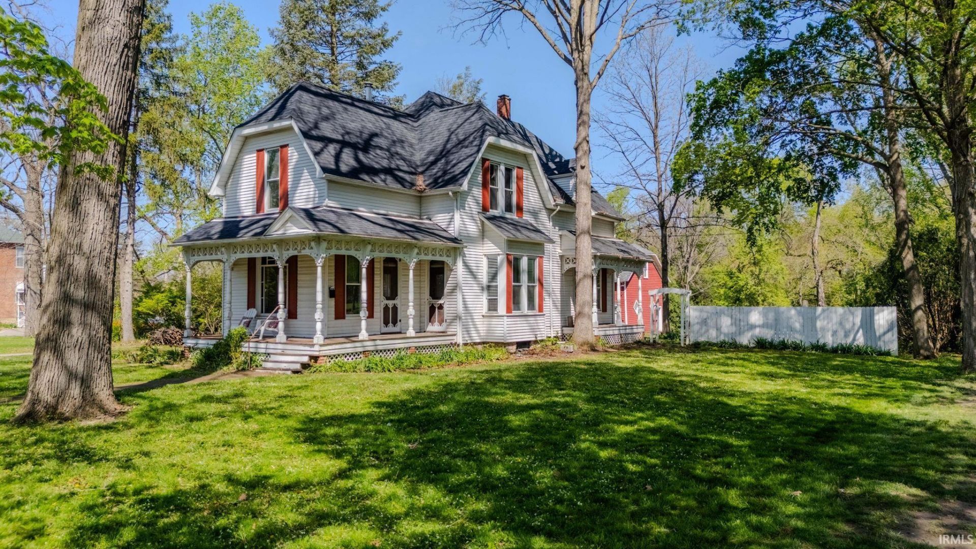 Beautiful and spacious two-story home situated on an oversized 99x400 in-town lot! Offering approximately 2,416 sq ft, this property features 4 bedrooms and 1.5 bathrooms with a functional and flexible layout. Enjoy relaxing mornings or evenings on the inviting L-shaped wraparound porch. Recent updates include a new roof (2025), vinyl replacement windows, some fresh interior paint, updated wiring, and a 2-year-old on-demand water heater. Inside, you'll find large, open living spaces with laminate flooring, abundant natural light, beautiful original woodwork throughout the main living areas, and stunning stained glass windows in both the living room and family room. The spacious kitchen offers ample room for cooking and includes all appliances. The main level features one bedroom and a half bath, while the upper level includes three carpeted bedrooms and a fully updated bathroom with vinyl plank flooring, dual vanity sinks, and a tub/shower combination. Convenient upper-level laundry hookups are in place, along with additional hookups in the basement. Outside, the property offers a oversized 2-car detached garage with a floored attic for extra storage, as well as an 8x12 storage shed all sitting on almost an acre next door to the city park in Wabash !