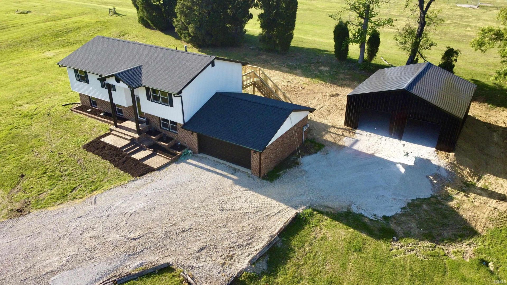 Everything NEW! It just smacks you in the face... pole barn, roof, siding, appliances, gutters, downspouts, deck... Septic with new lid, riser, back flow preventer, lines jetted tested... Welcome home to this 4 bedrooms/2 split level living areas/2 full baths home on an ACRE close to all the schools that you want to be in. Updated kitchen with new appliances, solid wood cabinets and retro chandelier. Step out on to the large newly constructed deck for grilling, sunbathing or just relaxing, staring at the huge greenspace expanse behind your new home. 3 bedrooms/one full bath on the upper level. On the lower level is a 4th bedroom, full bath and family room that could be converted into a 5th bedroom. The laundry area has enough space to build mudroom type of partititions. Connected is the two car garage with access door to the backyard. A newly constructed 30x30 pole barn with concrete floor is steps away and with an acre of land, there's enough space to run around, raise chickens/goats and do whatever you can dream. Come see this home and move into it by Memorial Day weekend!