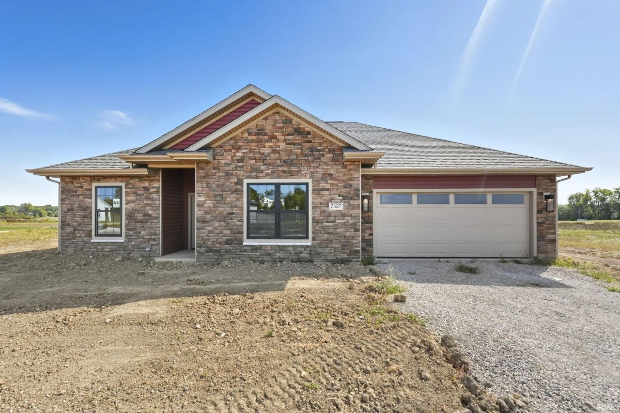"For a limited time, lock in a 5% rate with 3% down and NO PMI, or choose $0 down at 5.25% with NO PMI. Incredible savings on a brand-new construction home!" *Restriction do apply Looking for a ranch near the countryside of Southeast Fort Wayne? Welcome home! This thoughtfully designed property offers 3 spacious bedrooms and 2 full bathrooms across 1,575 square feet, starting with a welcoming foyer entry. The stone and red vinyl exterior bring unique character and add to the curb appeal along Starks Blvd. With its intentional elevation, the home's faade has both height and depth, giving this ranch an impressive presence. Inside, the living area features a custom accent wall that flows seamlessly into the kitchen and eat-in dining space. Closet Concepts systems are installed throughout for organized storage. The home comes fully stocked with appliances, and the bathrooms showcase luxury tiled showers. Move-in ready and designed with both style and comfort in mind, this home is ready for its new owner.