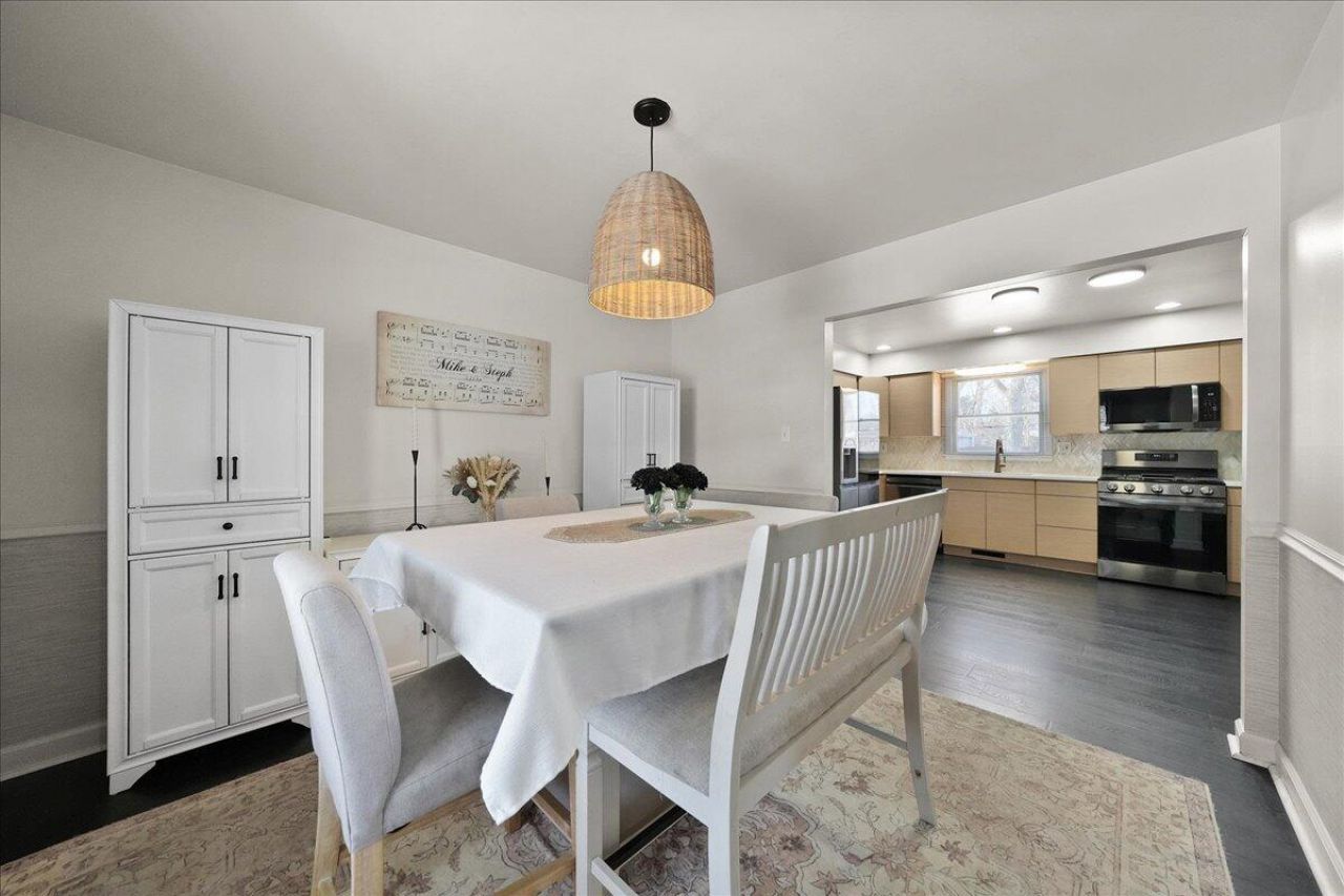Tastefully updated and meticulously maintained, this standout 2-story home delivers the perfect blend of location, space, and lifestyle in the heart of Crown Point. Just minutes from the historic Square and near local parks, this home offers walkable convenience while being tucked away on a corner lot at the end of a quiet cul-de-sac--a rare and highly desirable setting. From the moment you enter, the oversized living room with real hardwood floors sets the tone with warmth, natural light, and inviting scale. The dining area flows effortlessly into the kitchen, creating a layout that works beautifully for both everyday living and entertaining. The kitchen is bright and functional, featuring light cabinetry, stainless steel appliances, and generous counter space. The upper level offers a spacious primary bedroom with his-and-hers closets, along with two additional bedrooms, all showcasing real hardwood floors and custom closet organizers. The full bathroom is finished with a clean ceramic tile shower surround. The fully finished basement is a game-changer, dramatically expanding the home's livable footprint with multiple finished rooms ideal for home offices, guest space, fitness, or hobbies, plus a large recreation area, half bath, finished laundry room, and storage--an exceptional amount of flexible space rarely found at this price point. Outdoor living is equally impressive. A huge, partially covered deck anchors the backyard and creates the perfect setting for entertaining, grilling, or relaxing, all overlooking a fully fenced yard with an above-ground pool and storage shed. A 2-car garage adds everyday convenience. With 3 bedrooms, 1 full bath, 2 half baths, a full finished basement, expansive outdoor living, and an unbeatable Crown Point location, this home offers comfort, flexibility, and long-term value in one complete package.