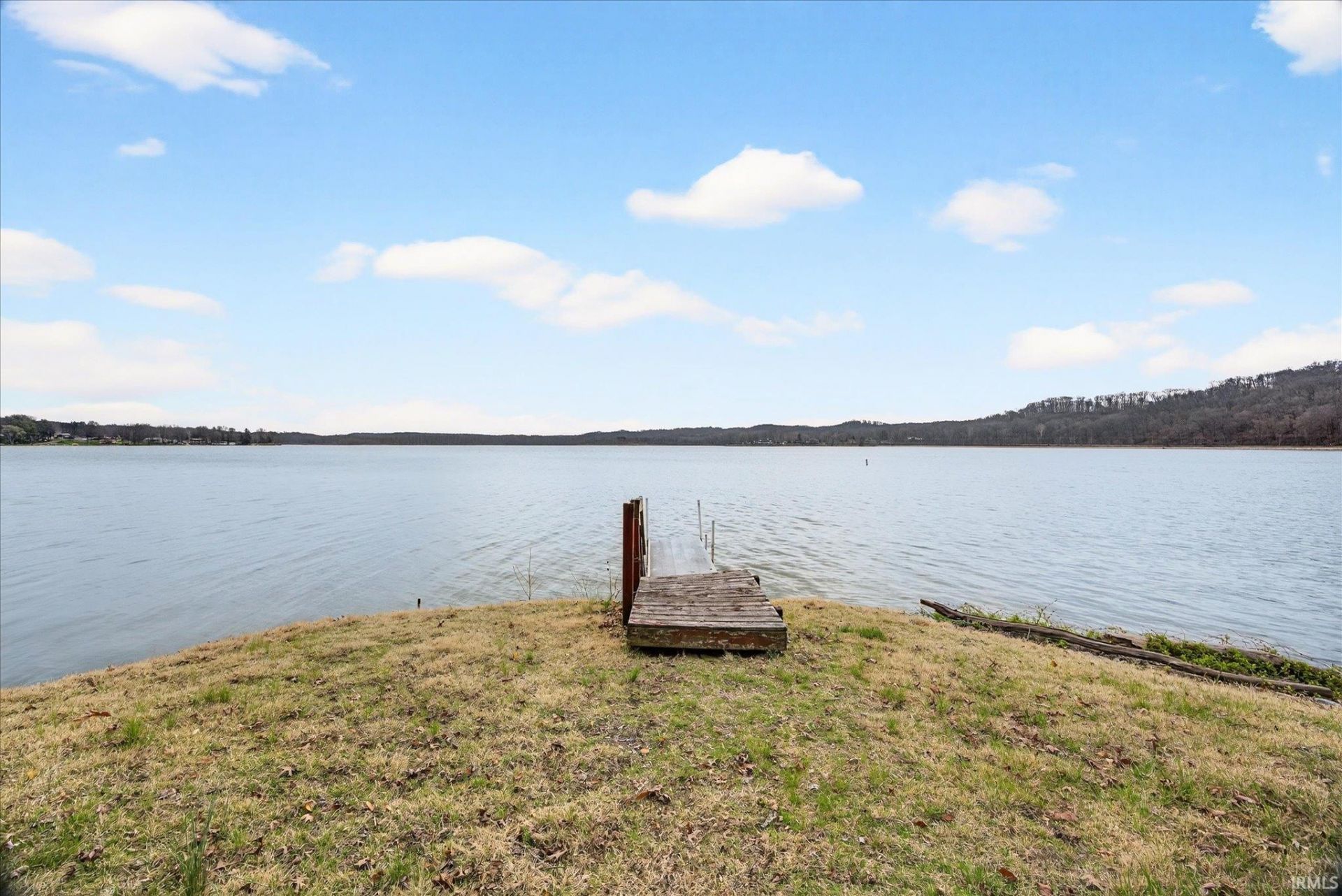 Welcome to the lake life at 7588 N Blue Heron Dr, Lake Lemon. Rich with local history, the home was built by Ralph Rogers for his daughter and husband. Constructed in 1954 with unique design practices of concrete blocks on their side with rebar and concrete and concrete overlay. Enjoy panoramic views of lake lemon inside or outside the home. Within this expansive area, the living room offers a stone woodburning fireplace. Above, a distinctive wood ceiling adds character, while a striking wood wall enhances the room's unique appeal. The main floor offers a bedroom, bath, open floorplan between kitchen, dining and living room and a large home office with closet space that could make a great primary suite. This lake home features a practical kitchen peninsula and a convenient kitchen bar, offering versatile options for dining and gathering. A substantial large kitchen island provides ample surface for preparation or casual meals, all beneath another beautiful wood ceiling. Extending the living experience outdoors, a welcoming covered patio invite moments of relaxation and outdoor enjoyment. This exceptional property has a captivating water view, a hallmark of its prime waterfront location. The sunroom provides a bright haven, allowing appreciation of the natural surroundings regardless of the weather. The expansive lot, encompassing 4 lots in 2 counties, ensures privacy and abundant outdoor space for personal pursuits. Another great feature is the home has an updated septic with four bedroom permit if someone would like to expand. The basement offers a workshop and tons of storage space. The property owns all the way into the water which is rare on Lake Lemon. Envision a life where every day unfolds against a backdrop of serene waters and large lot offering an outdoor fireplace and dock on the water.