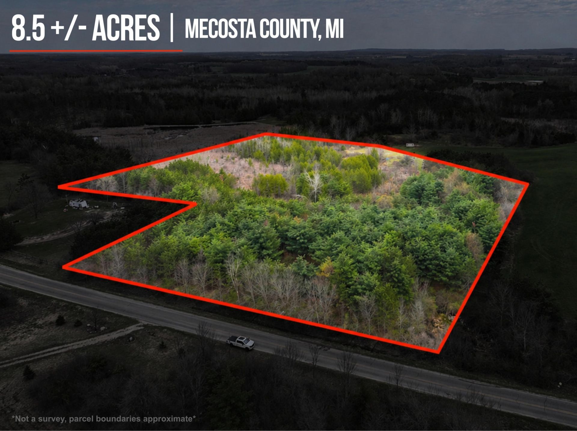 8.5± Acres - Mecosta CountyTake a look at this well-rounded 8.5± acre tract in Mecosta County. The property offers a great mix of wooded and open ground, along with some lower areas and multiple locations for potential food plots.The timber is diverse, with red pine along the northern portion and a variety of species throughout the rest of the property. A few fruit trees are also present, adding to the overall wildlife appeal.There is a nice roll to the terrain with varied topography, creating a number of options for hunting setups, recreation, or a future homesite.A highly usable tract with habitat diversity, rolling terrain, and strong potential for recreation, hunting, or a future build (with township approval)!*Sale contingent upon municipal approval of land division (split).*